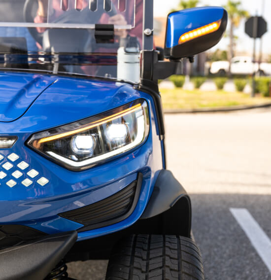 The MadJax® charging indicator turns charging into a premium experience. This color-changing hallmark glows to let you know when your battery level is fully charged, providing an elegant visual update from across the driveway. No guesswork, just a glow that says your cart is ready.
