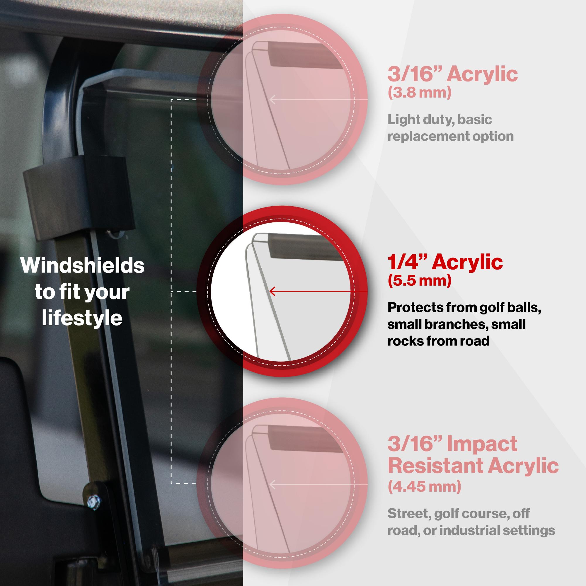 Experience ultimate comfort in your Star Capella with this folding windshield. Crafted from durable acrylic, it shields you from wind, rain, debris, and more. The adjustable folding design gives you full control over your cart’s airflow. With a secure fit that prevents rattling or shifting, this windshield is easy to install and built for lasting performance.