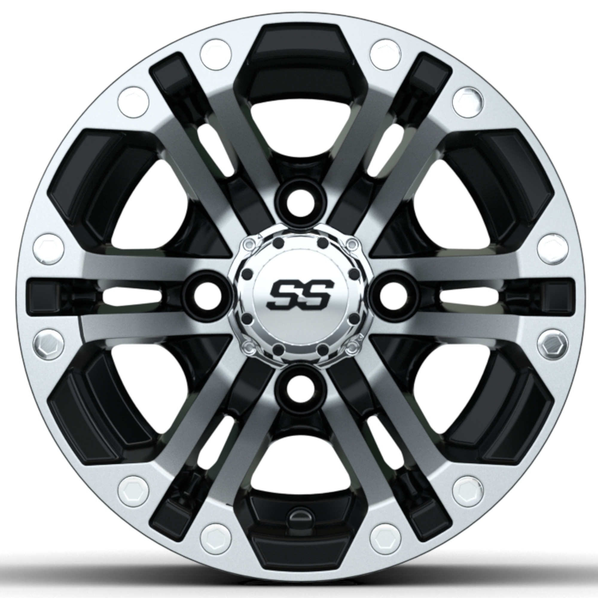 product 10″ GTW® Specter Black with Machined Accents Wheel Item # 19-149 10x7 Machined / Black Specter Wheel10x7 Aluminum Wheel (Center Cap Included)Offset: 3:4 (ET -.25)Machined and Black Powder Coated FinishLug Nuts are Sold SeparatelyGTW® Wheels Find A Dealer
