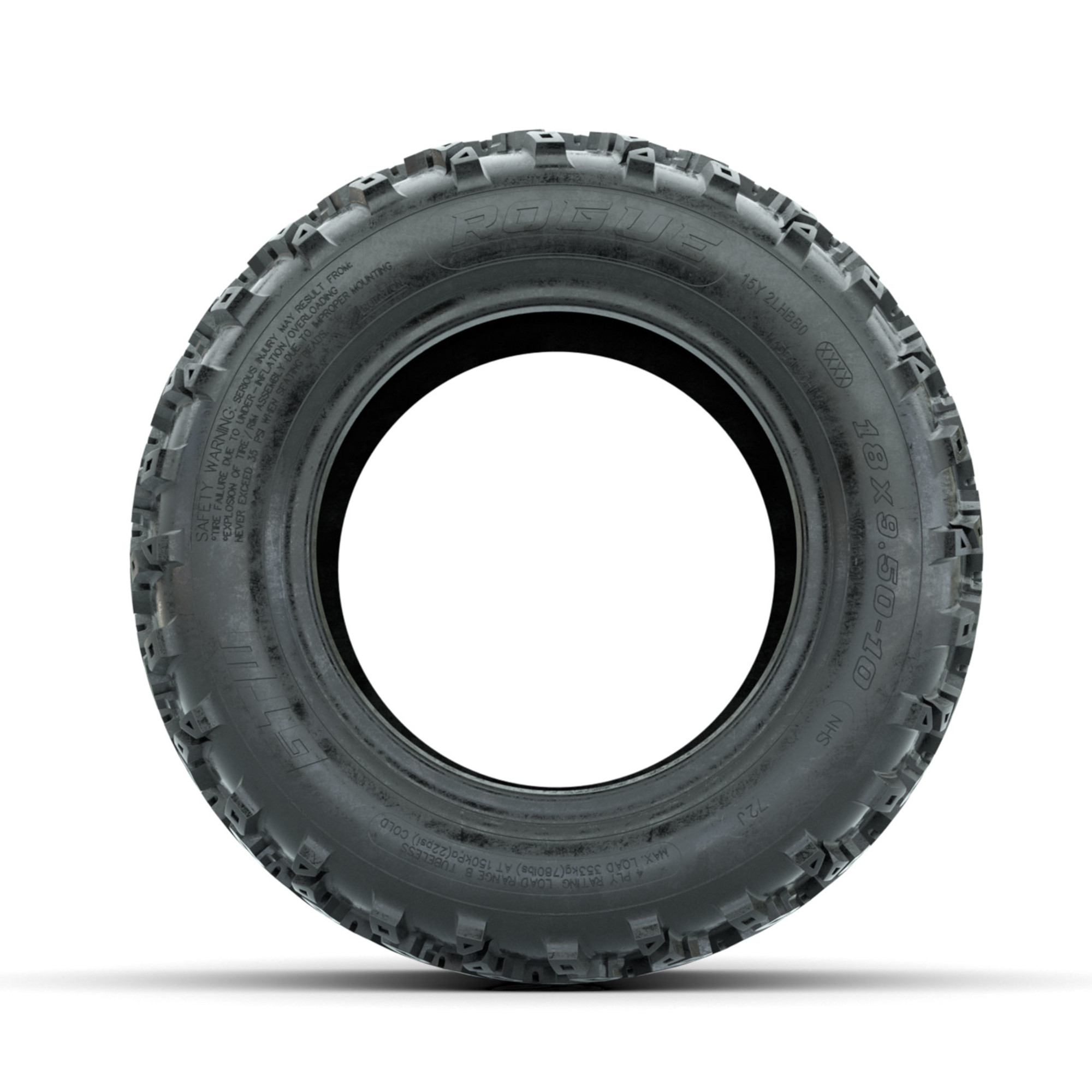 product 18x9.50-10 GTW Rogue All Terrain Tire Item # 20-077 18 Inch, 4-ply, Rogue All-Terrain tireTread Classification:All-TerrainTire Specifications:18x9.50-10 4-PlyGTW Rogue All-Terrain tireNo Lift Kit Required / Tire is approx. 18" tall x 9 1/2" wide Please note that this does not include the wheelThis tire replaces item# 40309 Find A Dealer