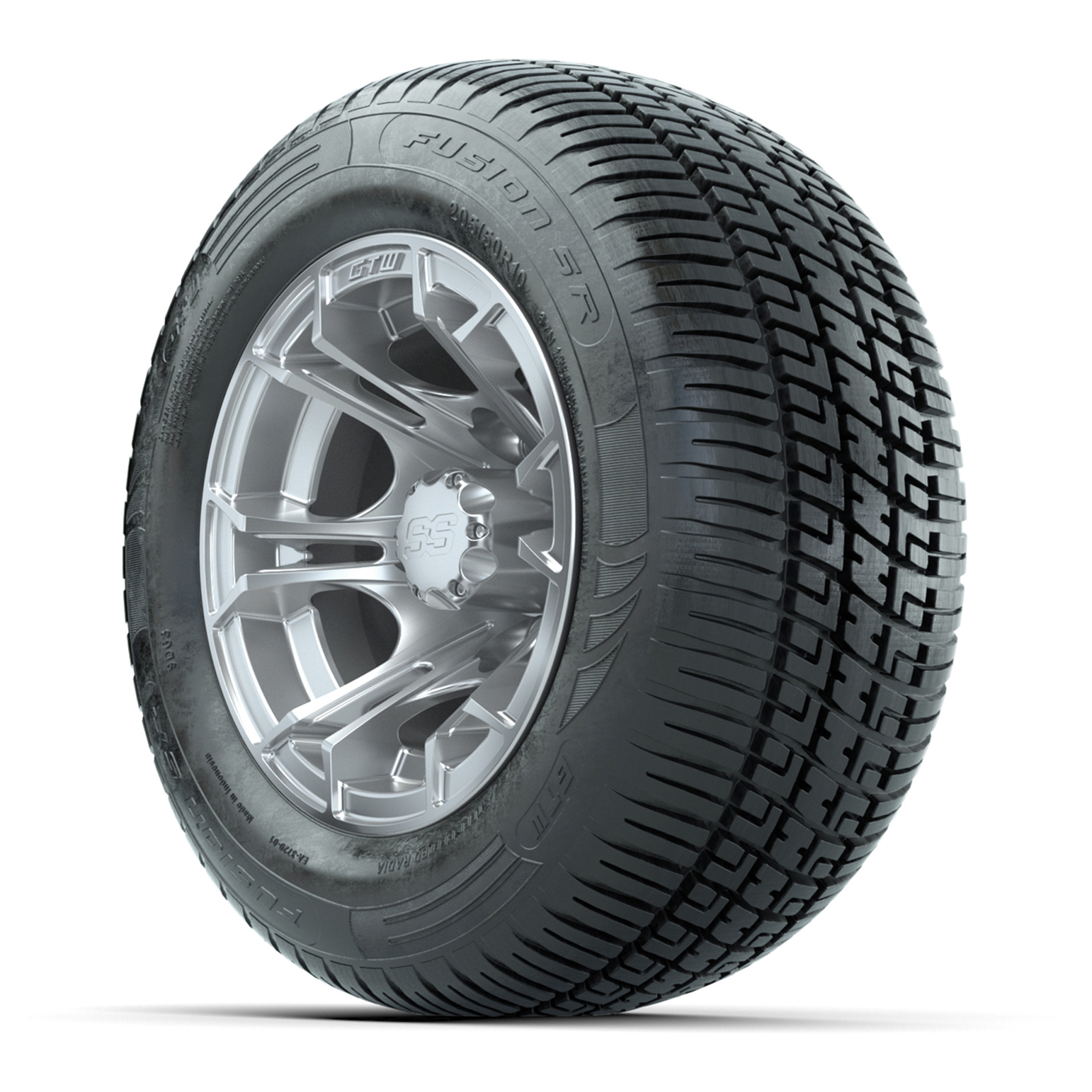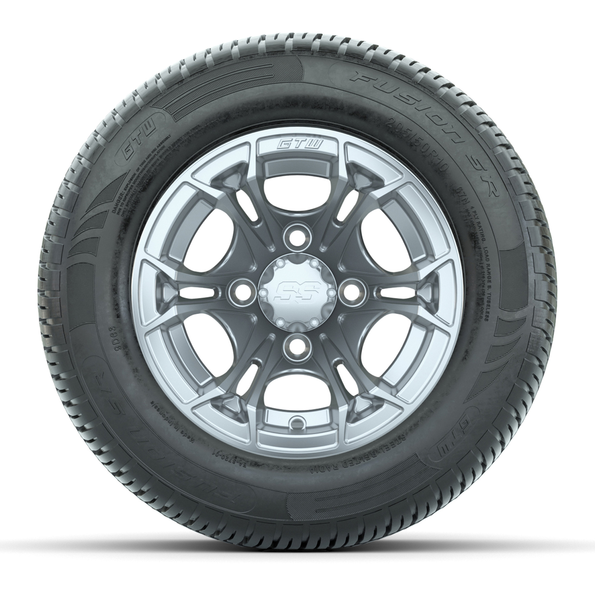 GTW Spyder Silver Brush 10 in Wheels with 205/50-10 Fusion SR Steel Belted Radial Tires – Full Set