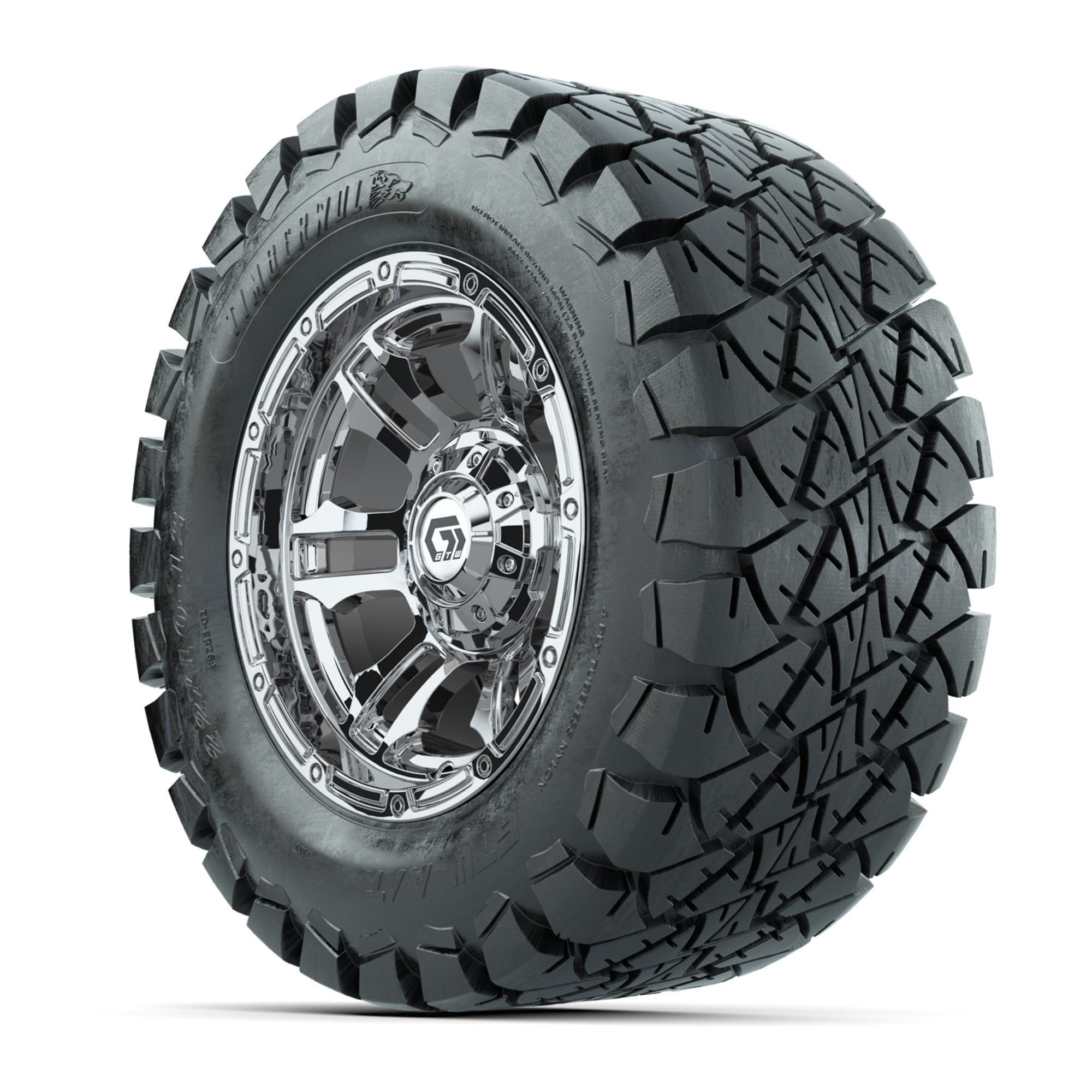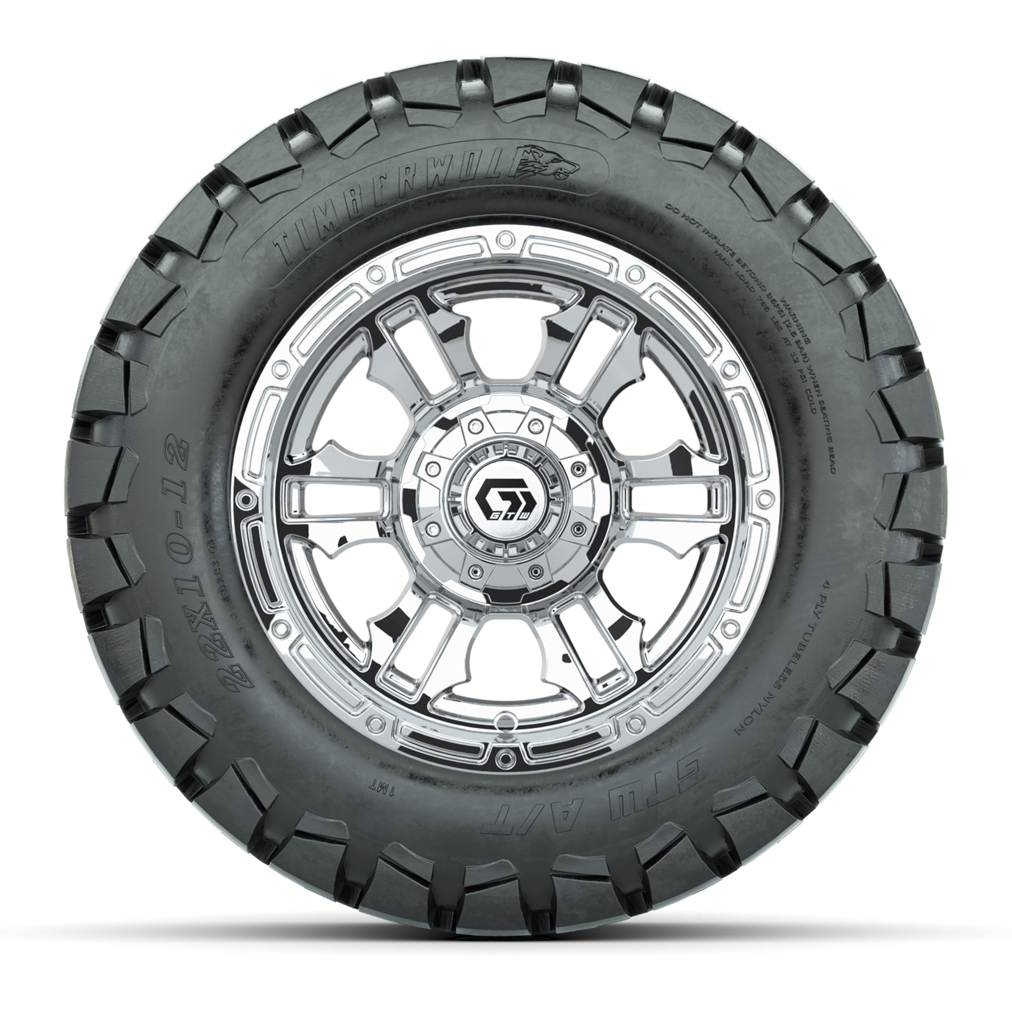 GTW® Shogun Chrome 12 in Wheels with 22x10-12 Timberwolf All-Terrain Tires – Full Set