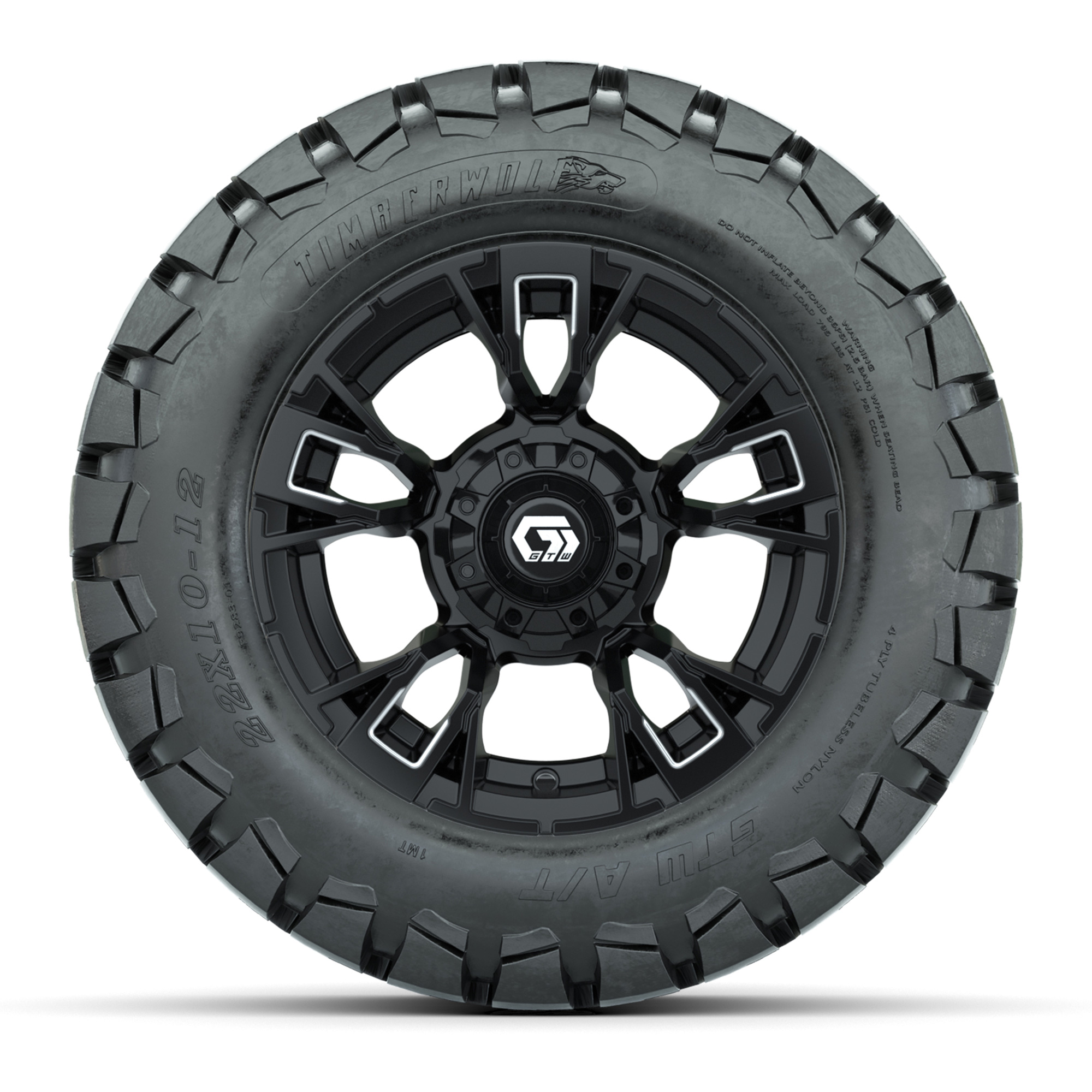 GTW® Vandal Matte Black/Machined 12 in Wheels with 22x10-12 Timberwolf All-Terrain Tires – Full Set