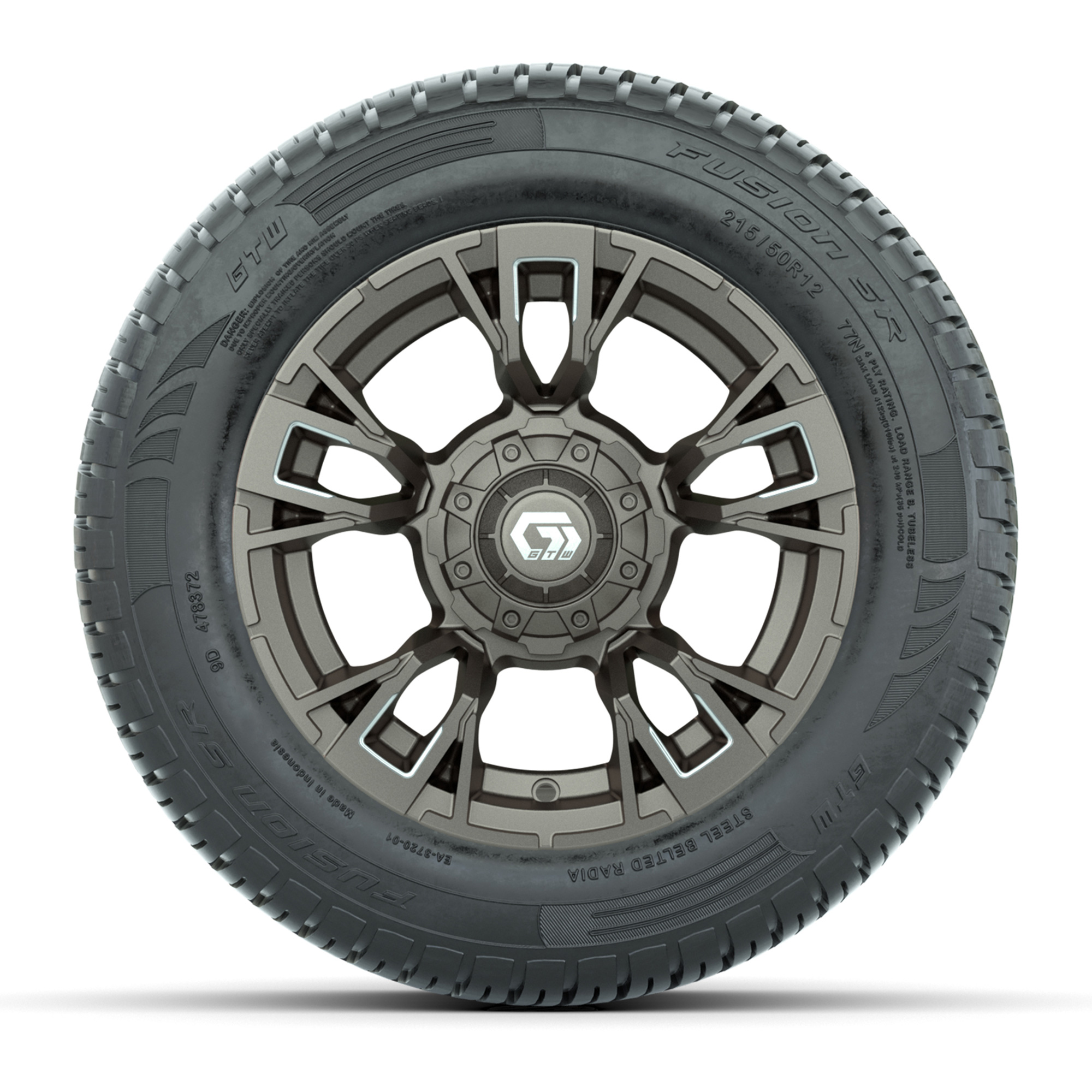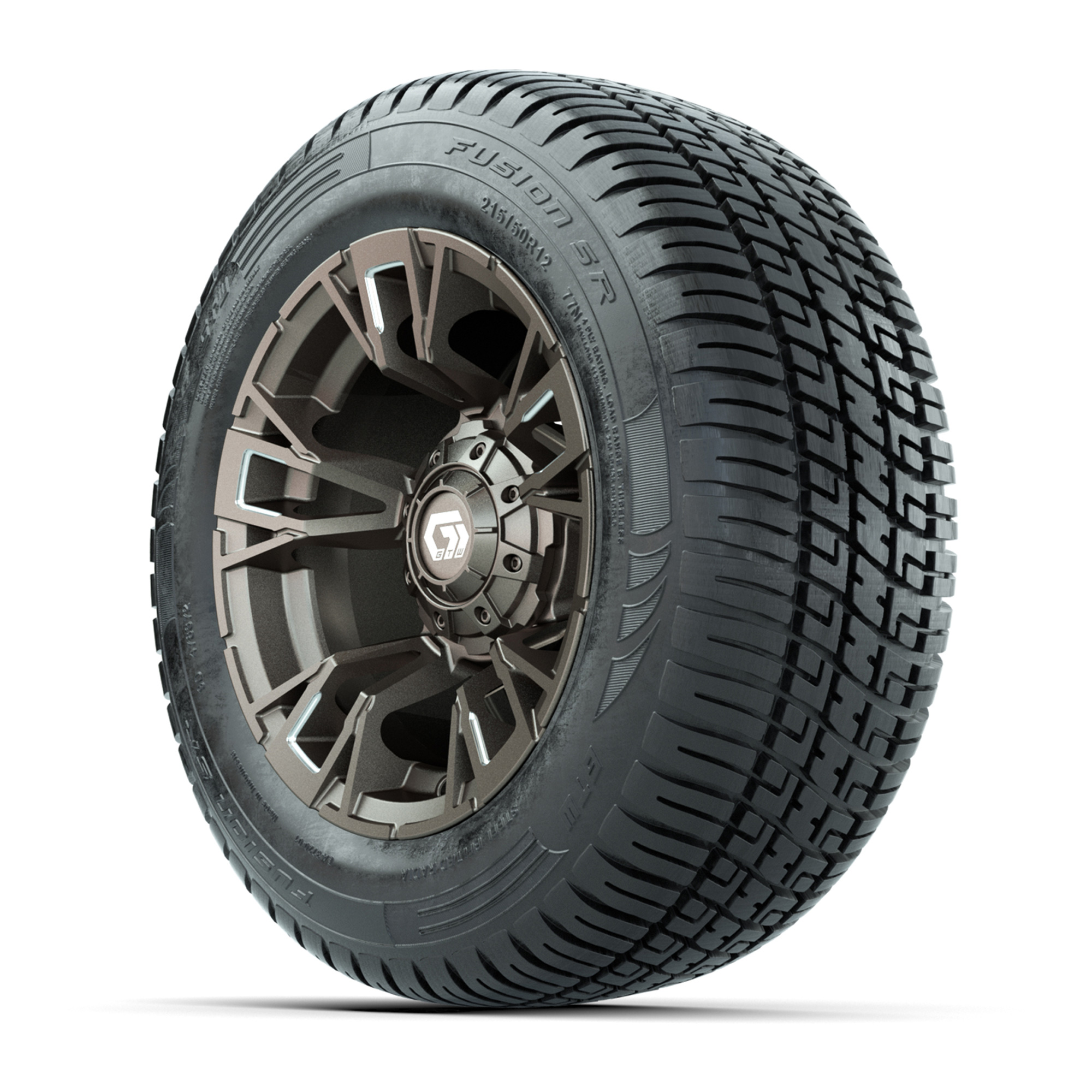 GTW® Vandal Satin Bronze/Machined 12 in Wheels with 215/50-R12 Fusion S/R Steel Belt Radial Tires – Full Set
