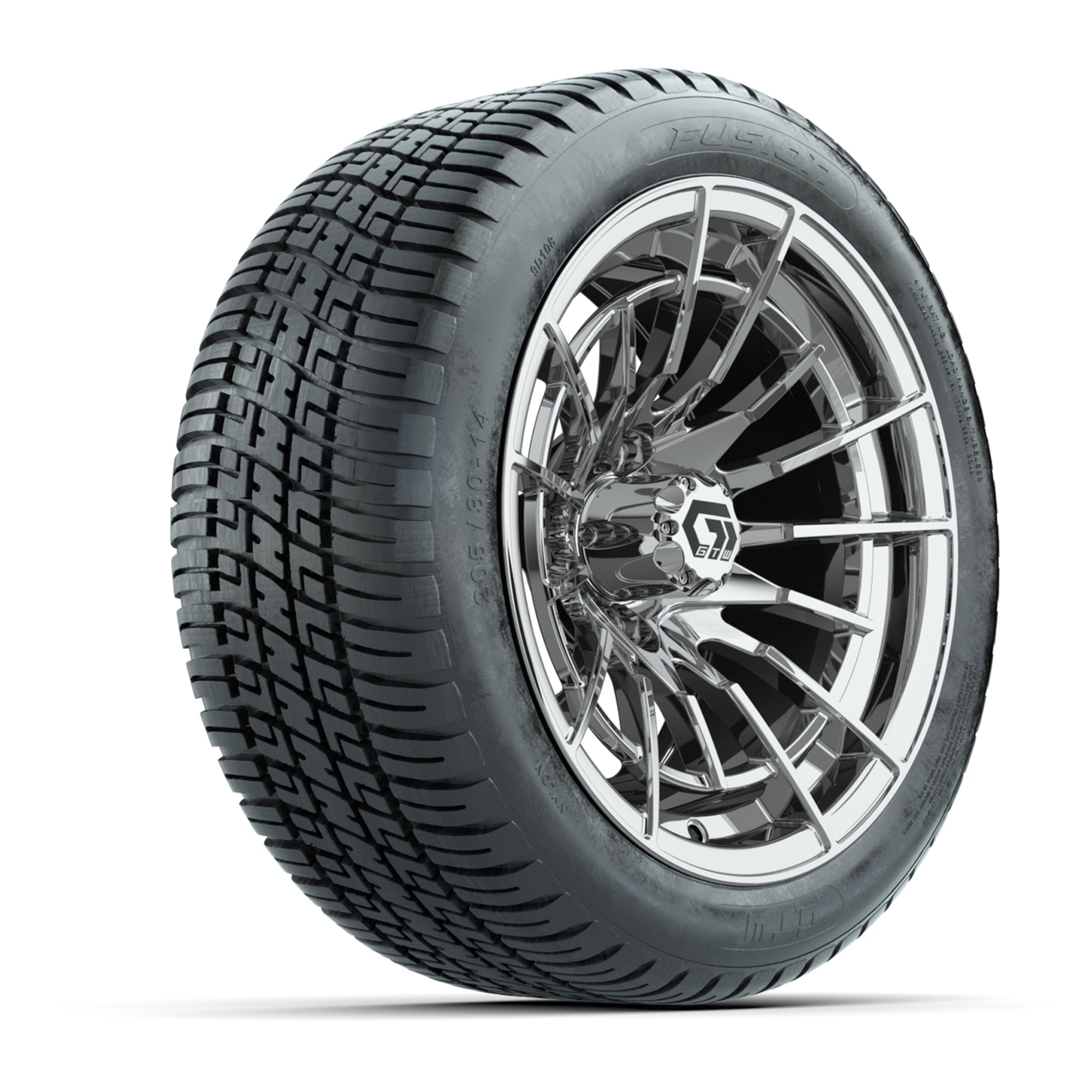 GTW® Boost Chrome 14 in Wheels with 205/30-14 Fusion Street Tires – Full Set