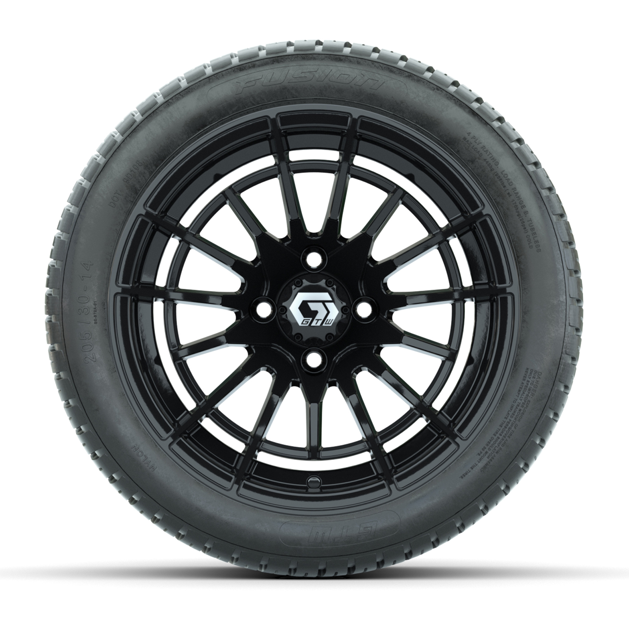 GTW® Boost Gloss Black 14 in Wheels with 205/30-14 Fusion Street Tires – Full Set