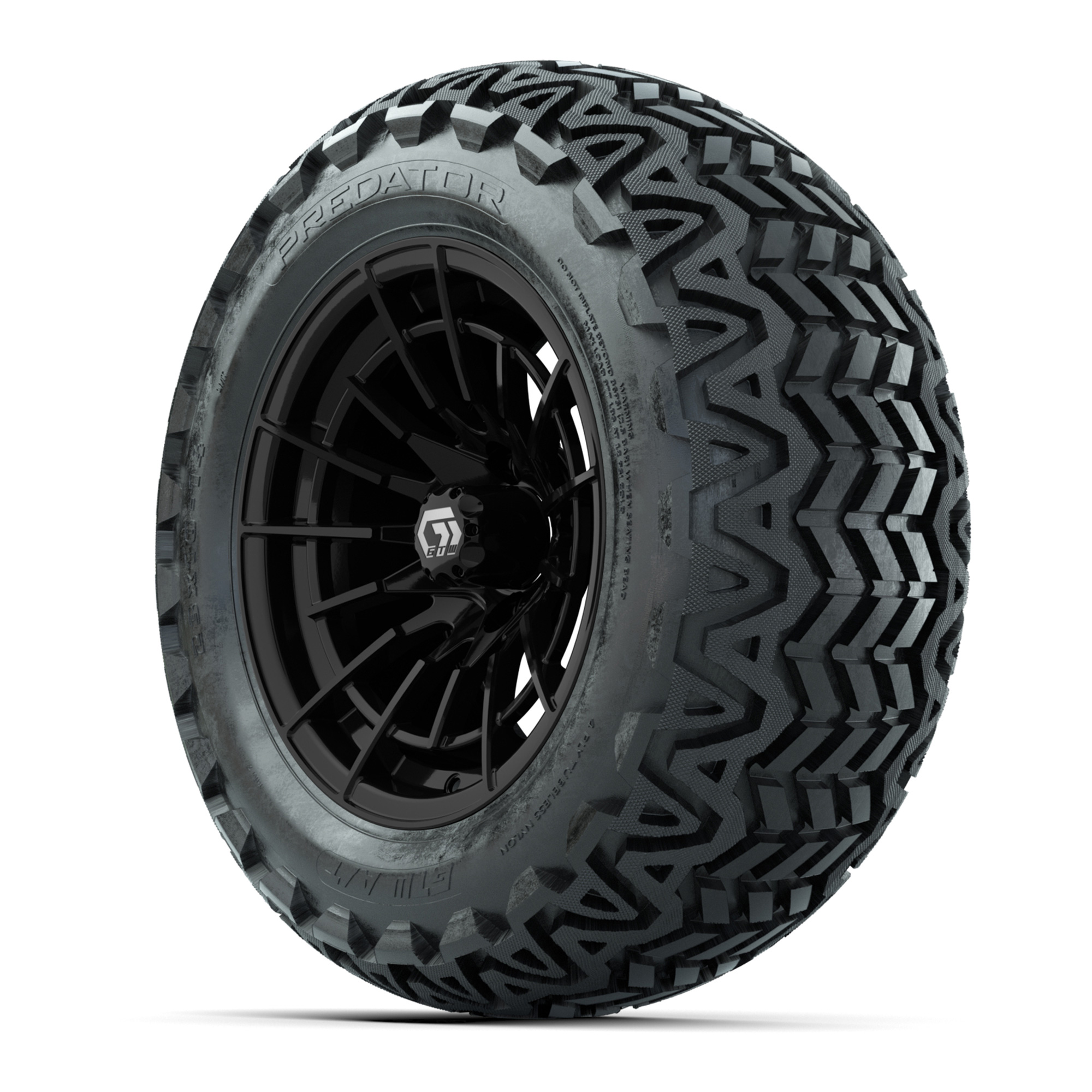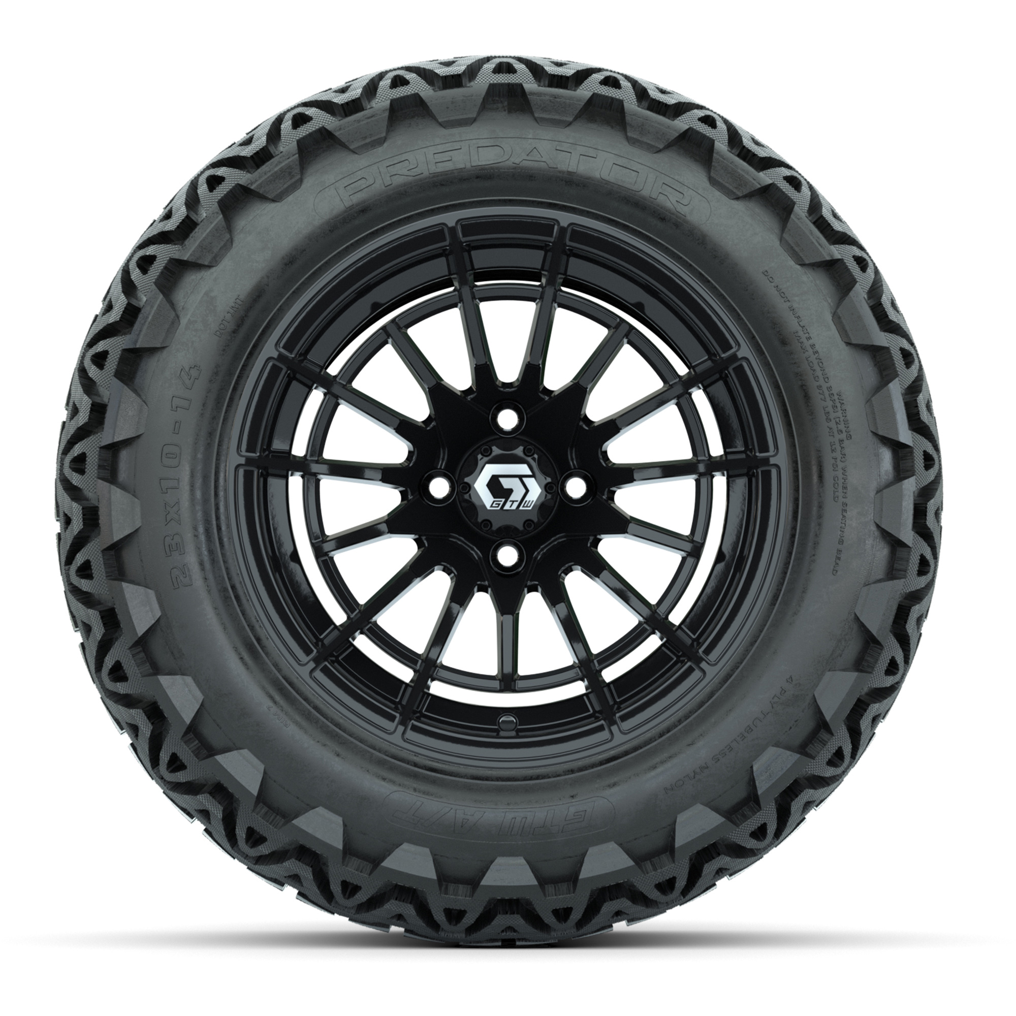GTW® Boost Gloss Black 14 in Wheels with 23x10-14 Predator All-Terrain Tires – Full Set