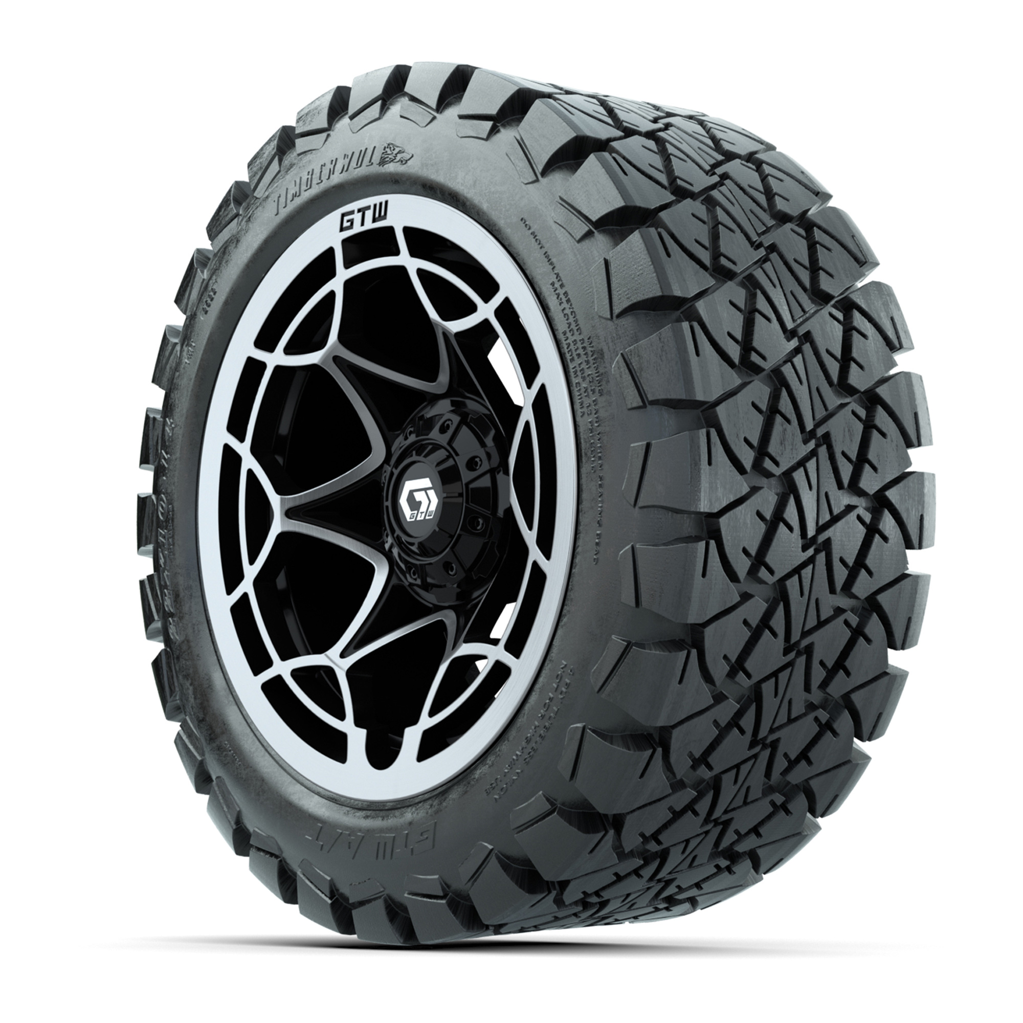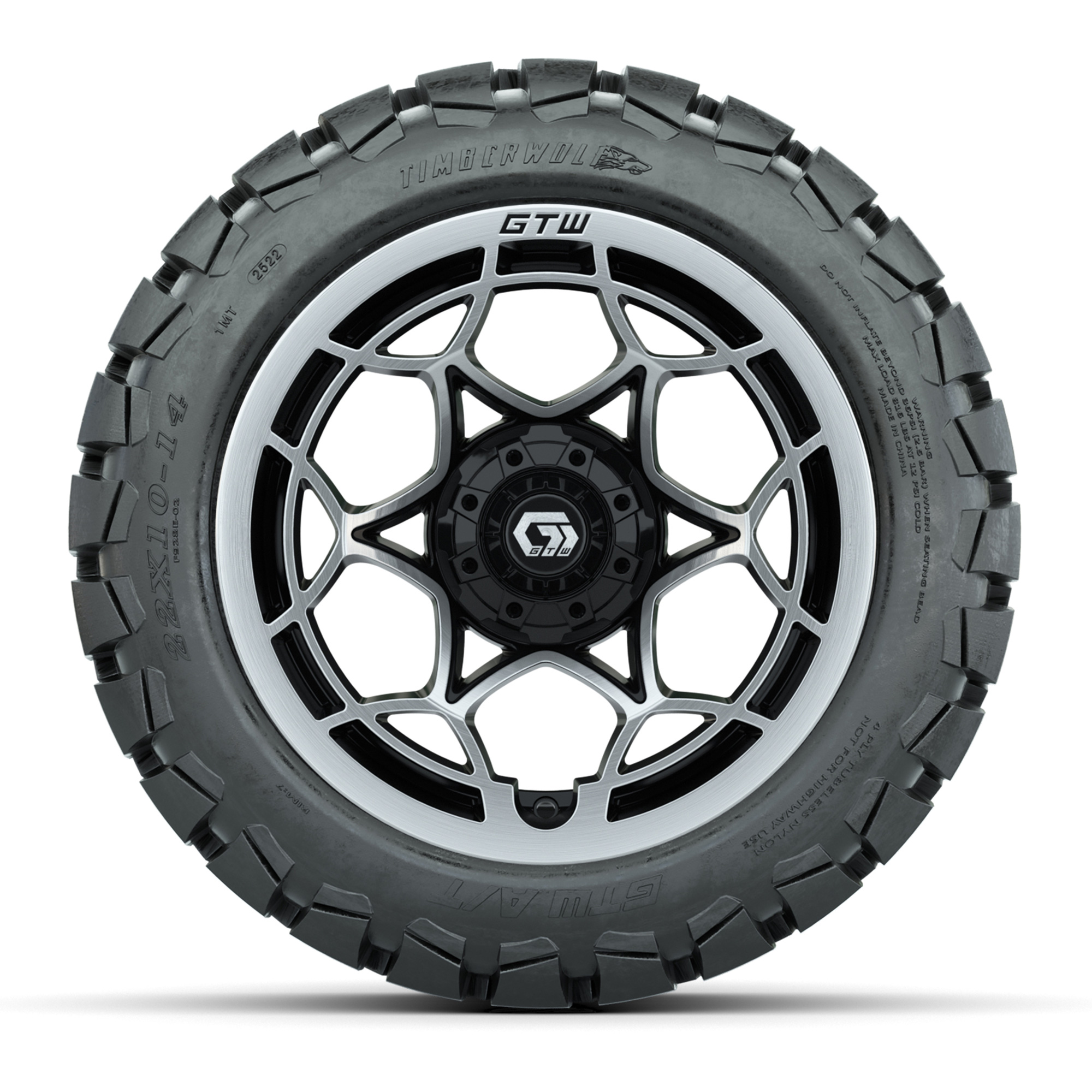 GTW® Nexus Gloss Black/Silver 14 in Wheels with 22x10-14 Timberwolf All-Terrain Tires – Full Set