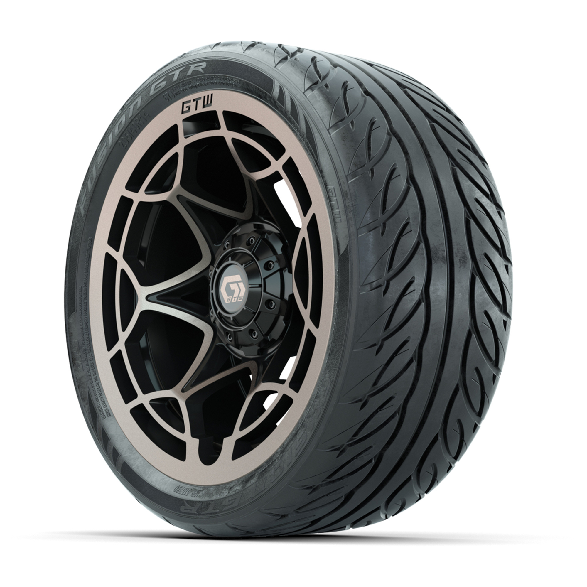 GTW® Nexus Gloss Black/Bronze 14 in Wheels with 205/40-R14 Fusion GTR Steel Belted Street Tires – Full Set