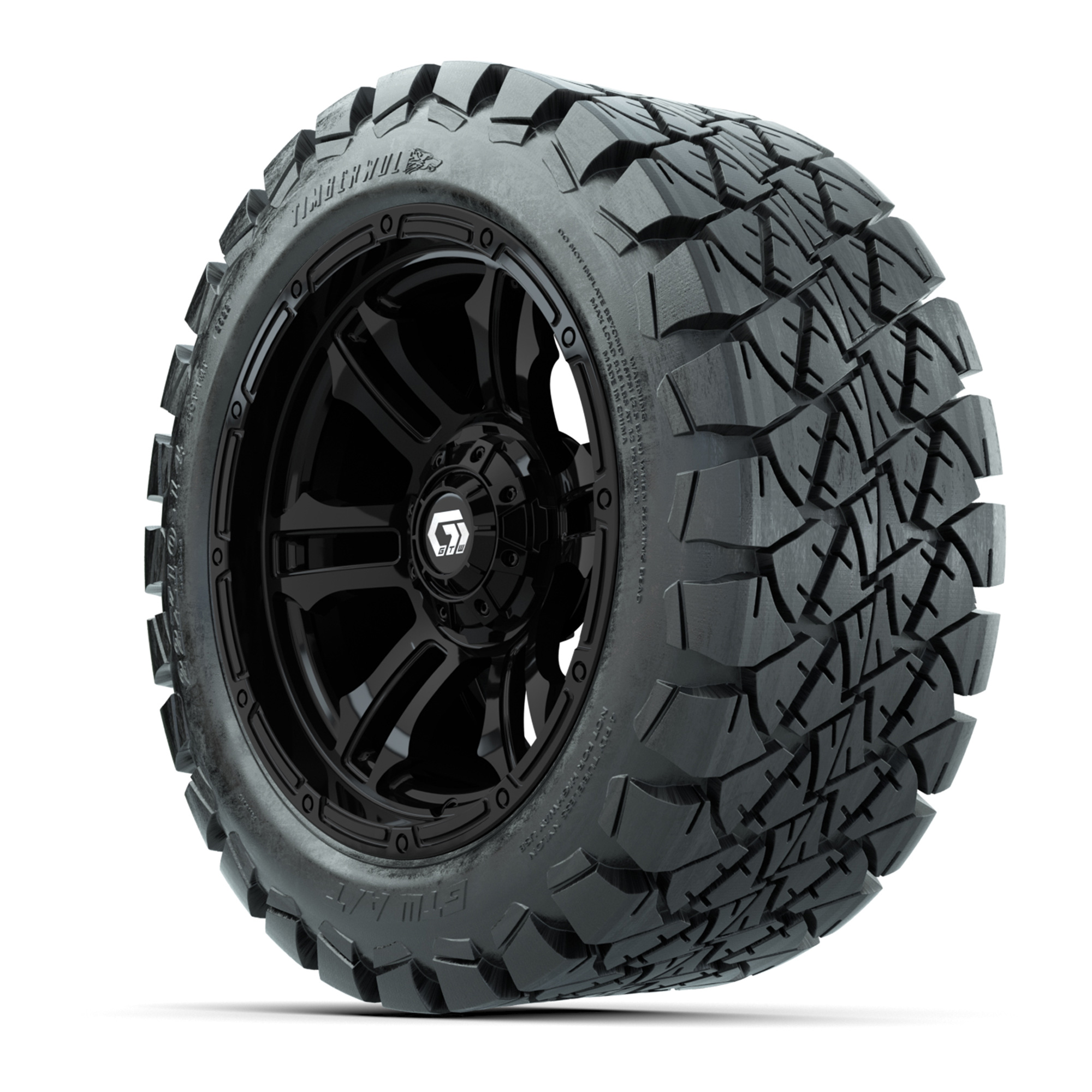 product GTW® Shogun Gloss Black 14 in Wheels with 22x10-14 Timberwolf All-Terrain Tires – Full Set Item # A19-1225 Tread Classification:All-Terrain/Off-RoadFull kit includes:(4) 14” GTW® Shogun Wheels / Gloss Black Finish / Offset: 3:4 (ET -.25)(4) 22x10-14 GTW® Timberwolf All-Terrain Tires / Tire is approx. 22” tall (4-Ply)(4) Color match capsLug nuts sold separatelyPlease Note: All Wheels are 4 on 4 Hole / Lug Pattern (4x101.6mm) unless otherwise specified.Tech Tips:We Recommend a Lift Kit for This Tire & Wheel KitTire & Wheel Combos are mounted and Inflated Before Shipping, Free of Charge Please Check and Adjust PSI in Tires Before Operation (Recommended Inflation Can Be Found on Sidewall of Tire)All Wheels Have a lug pattern of "4x101.6mm"Lug Nuts Sold Separately: Standard: #LUG4S (Standard Chrome Lug Nuts) Metric: #LUG4M (Yamaha Models) Find A Dealer