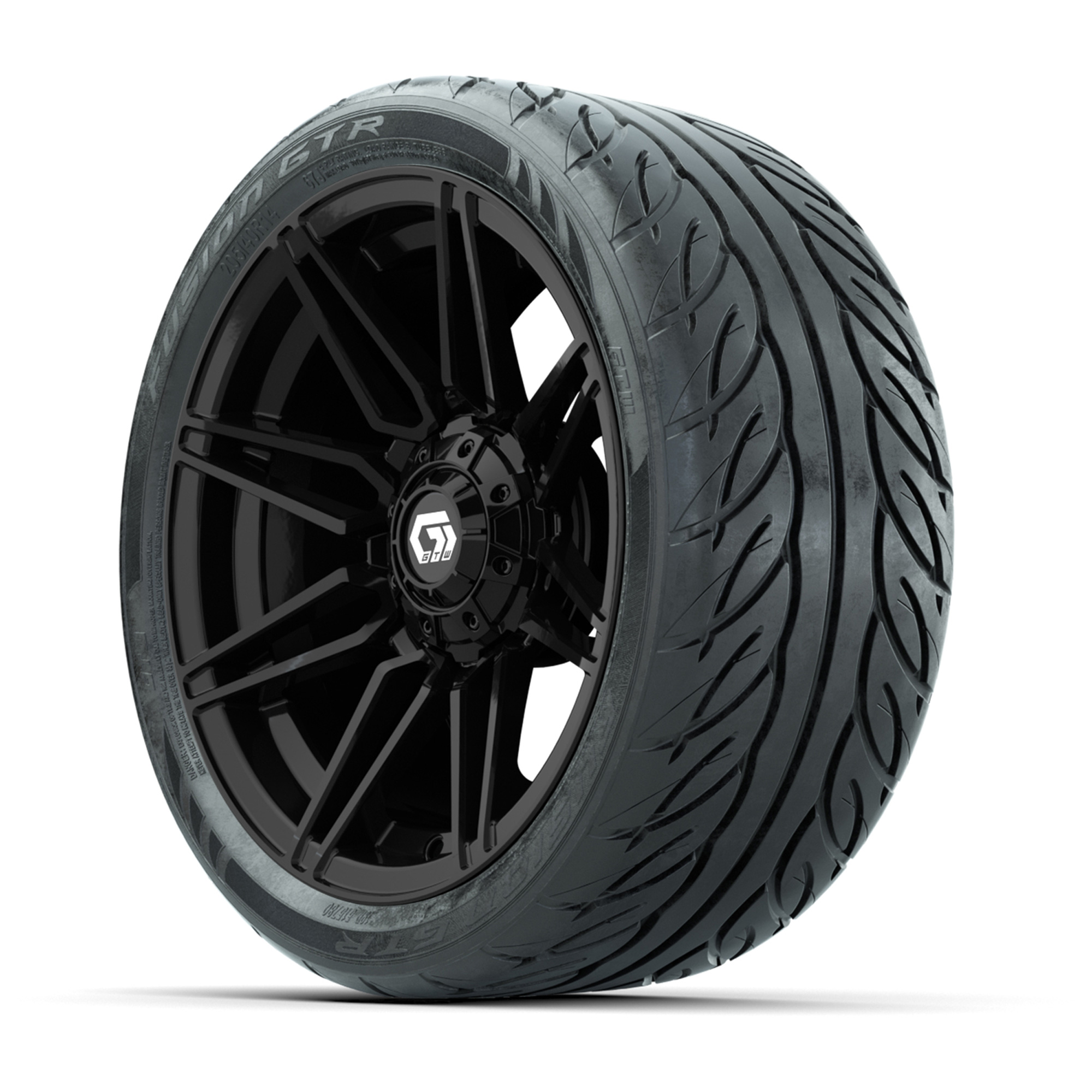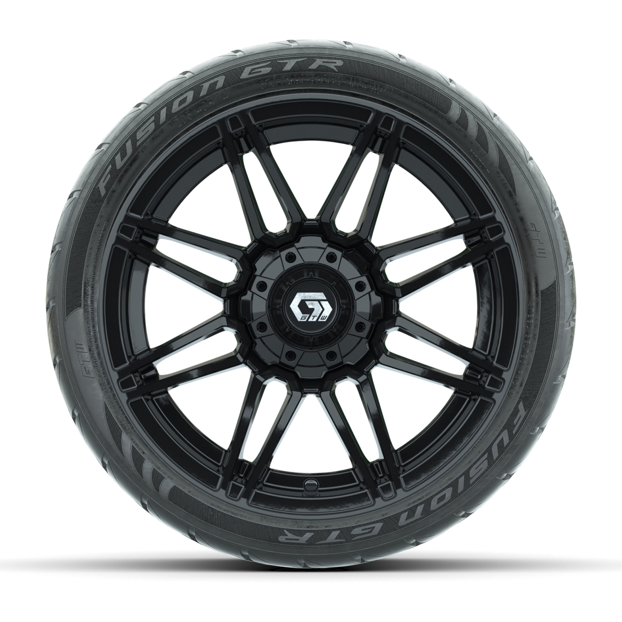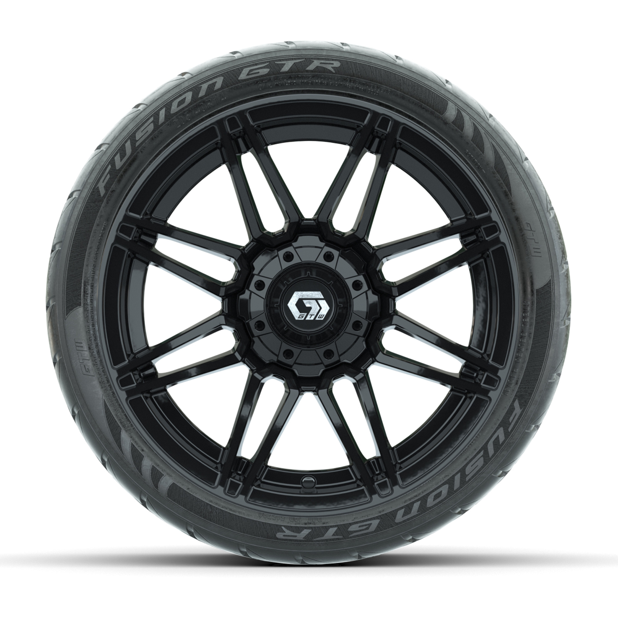 GTW® Stealth Gloss Black 14 in Wheels with 205/40-R14 Fusion GTR Steel Belted Street Tires – Full Set