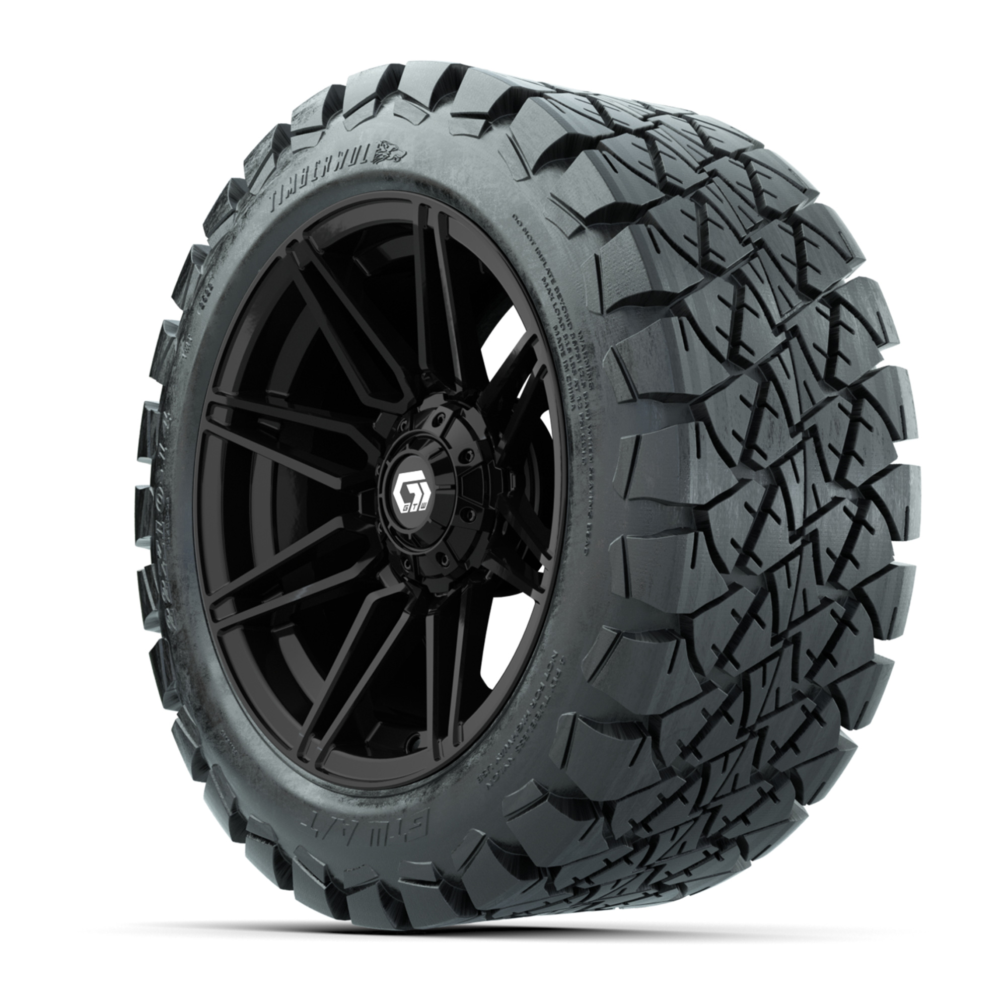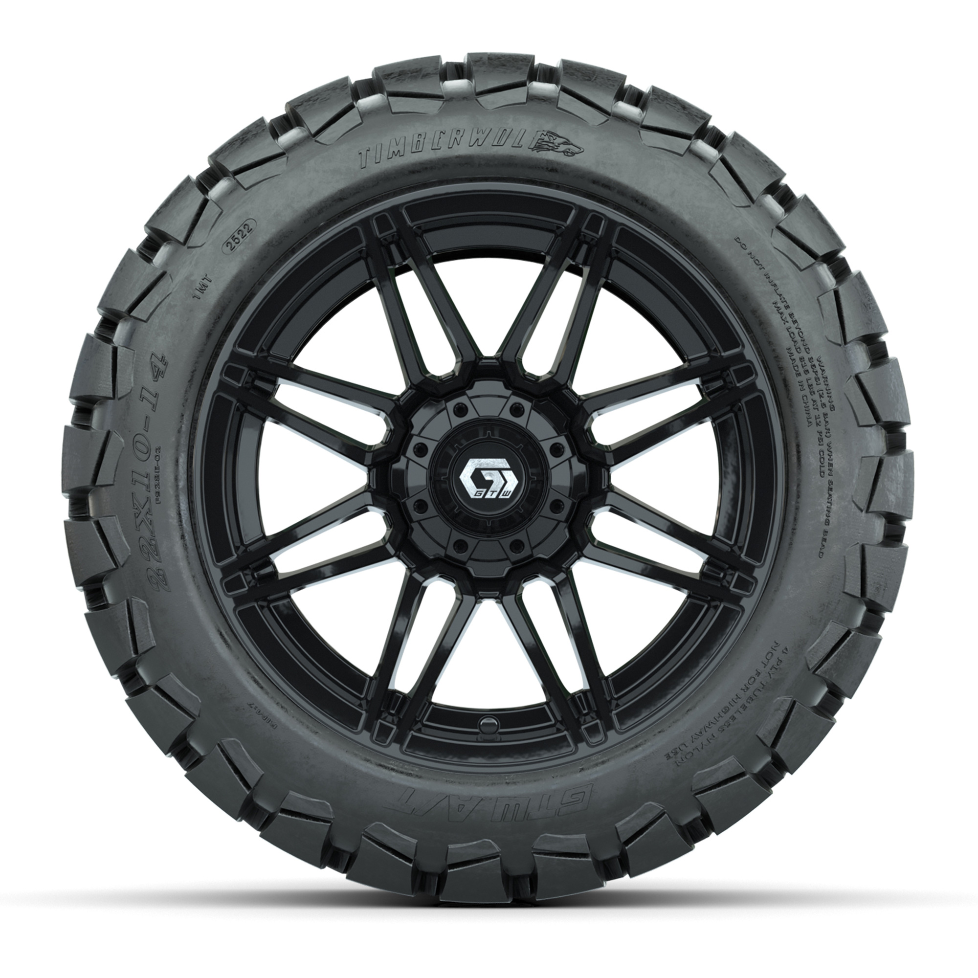 GTW® Stealth Gloss Black 14 in Wheels with 22x10-14 Timberwolf All-Terrain Tires – Full Set