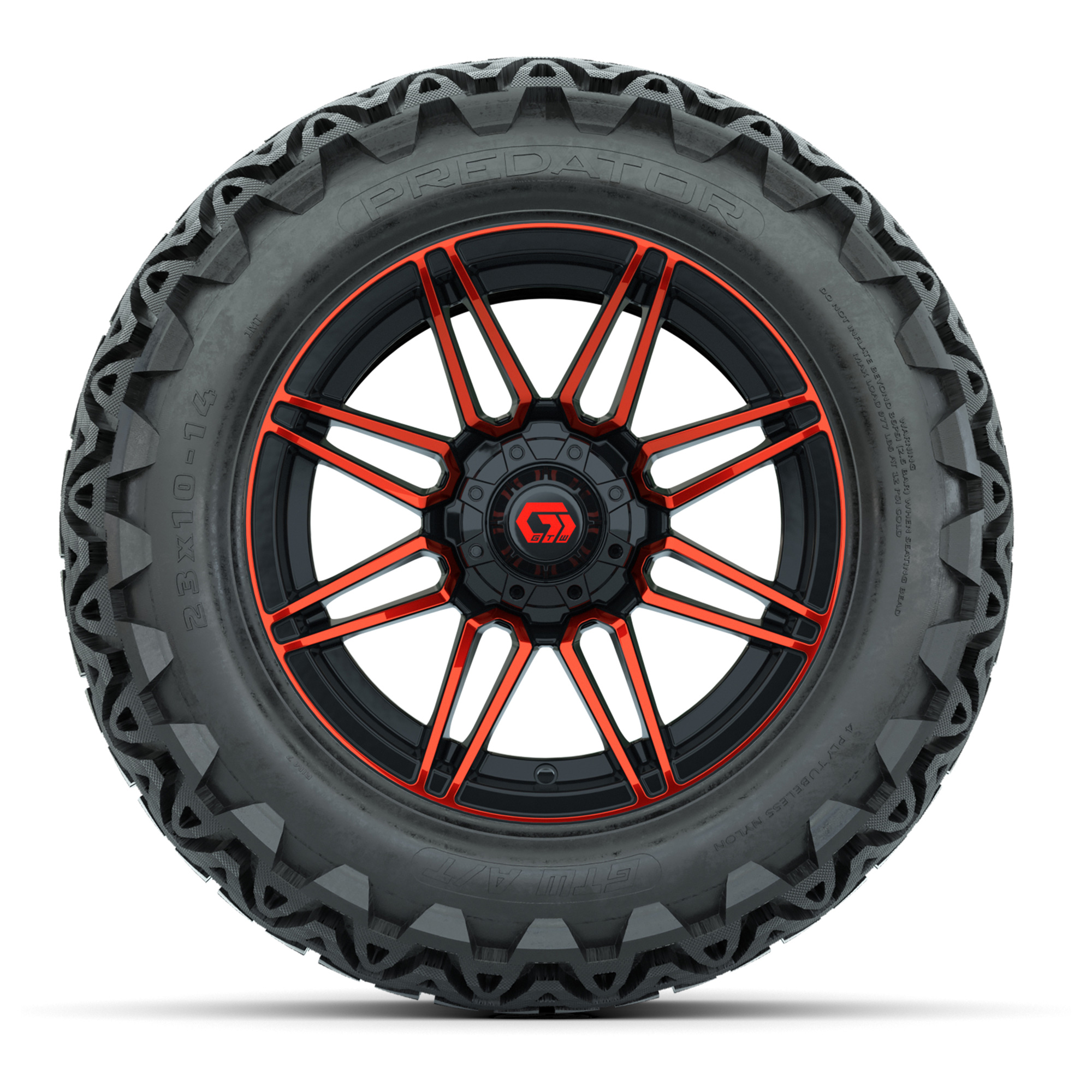 GTW® Stealth Gloss Black/Red 14 in Wheels with 23x10-14 Predator All-Terrain Tires – Full Set