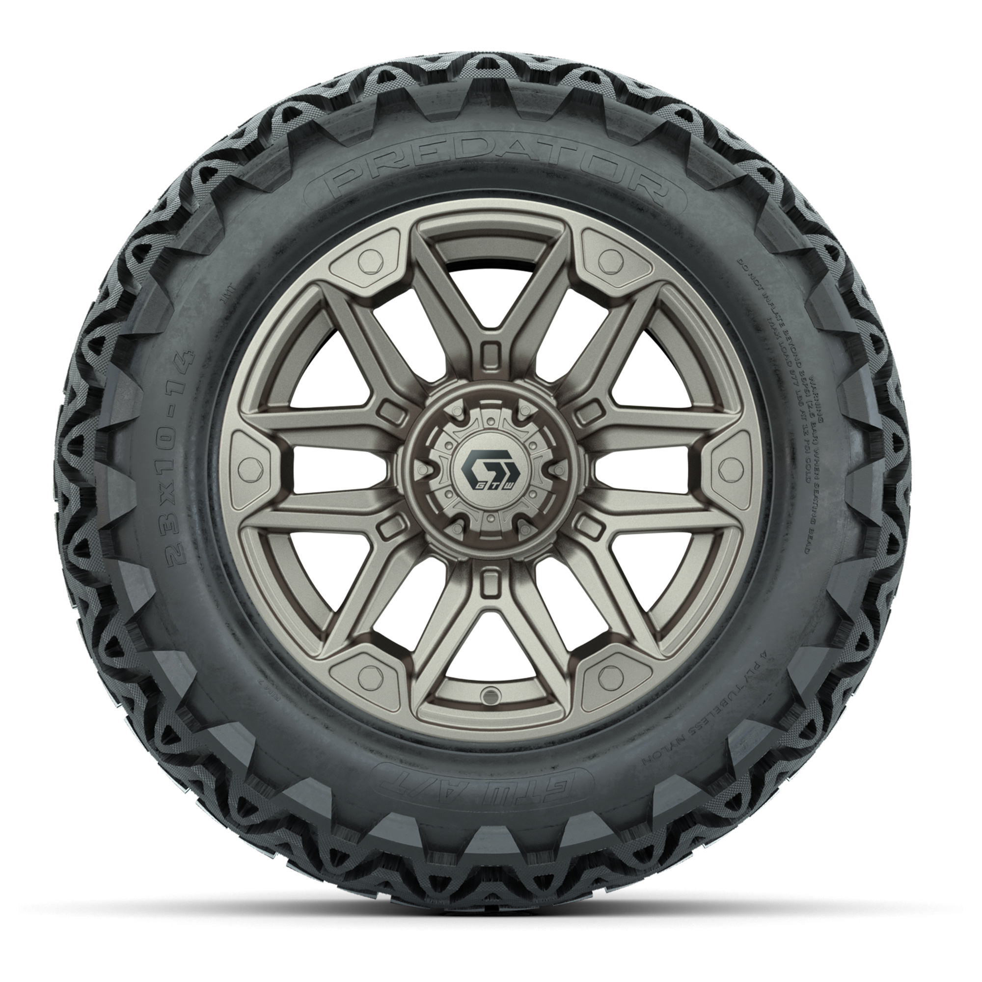 GTW® Graffiti Satin Bronze 14 in Wheels with 23x10-14 Predator All-Terrain Tires – Full Set