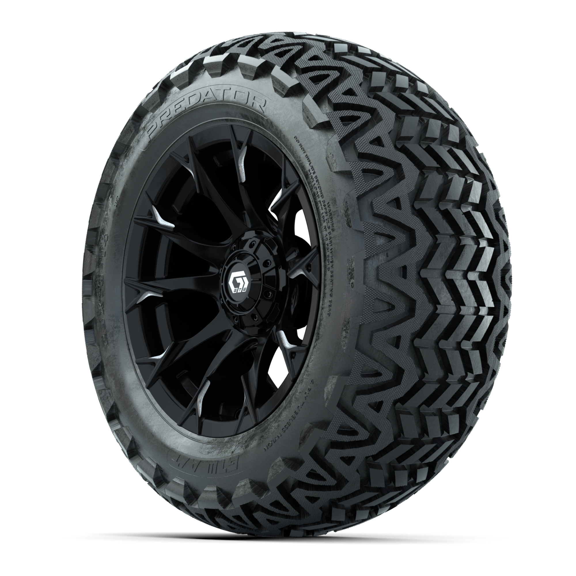 GTW® Diablo Gloss Black/Machined 14 in Wheels with 23x10-14 Predator All-Terrain Tires – Full Set