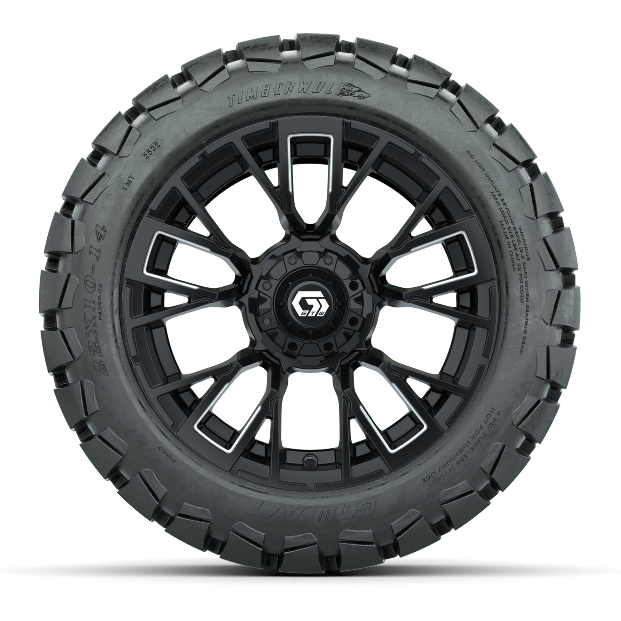 GTW® Vandal Matte Black/Machined 14 in Wheels with 22x10-14 Timberwolf All-Terrain Tires – Full Set