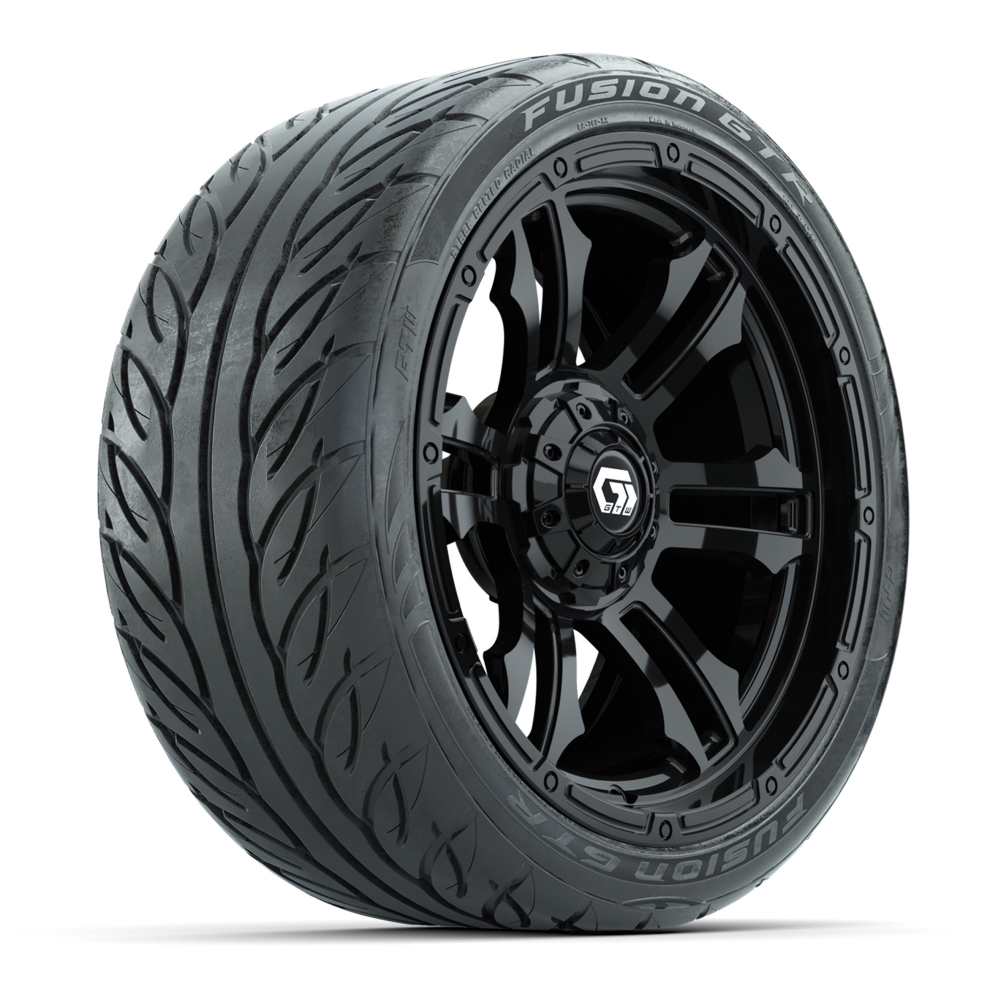 GTW® Shogun Gloss Black 15 in Wheels with 215/40-R15 Fusion GTR Steel Belted Street Tires – Full Set