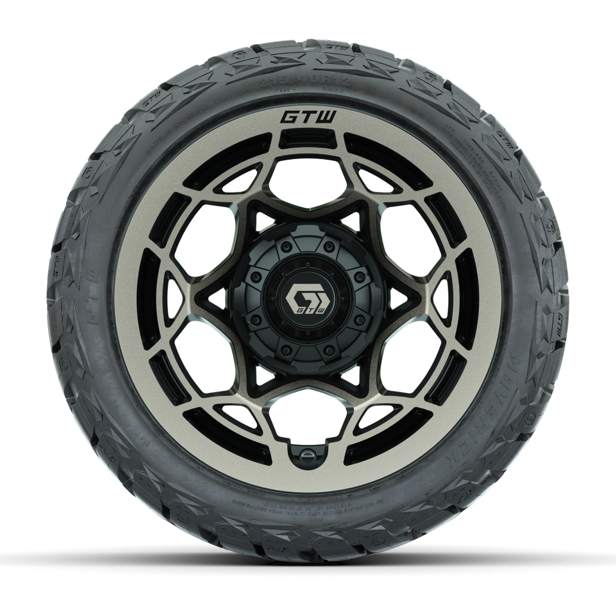 GTW Nexus Gloss Black/Bronze 12 in Wheels with 215/40-R12 Maverick Low-Profile All-Terrain Tires – Full Set