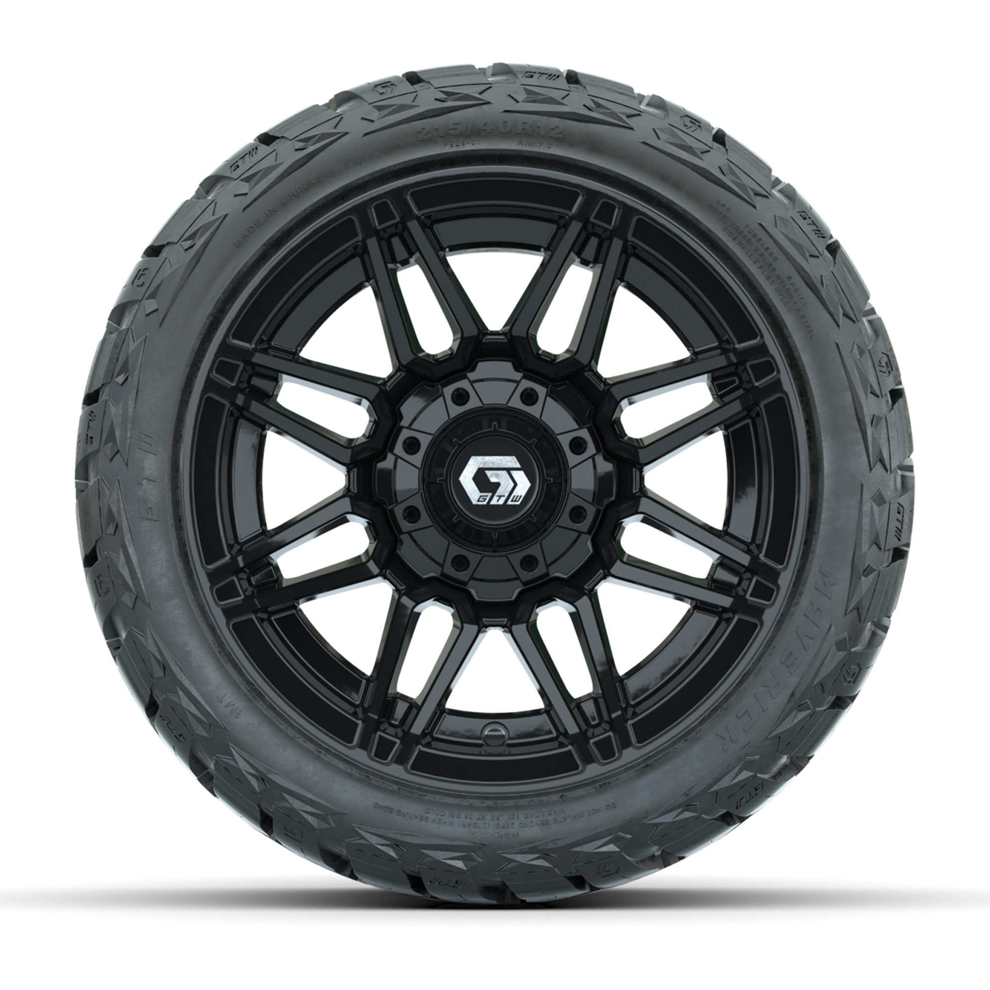 GTW Stealth Gloss Black 12 in Wheels with 215/40-R12 Maverick Low-Profile All-Terrain Tires – Full Set
