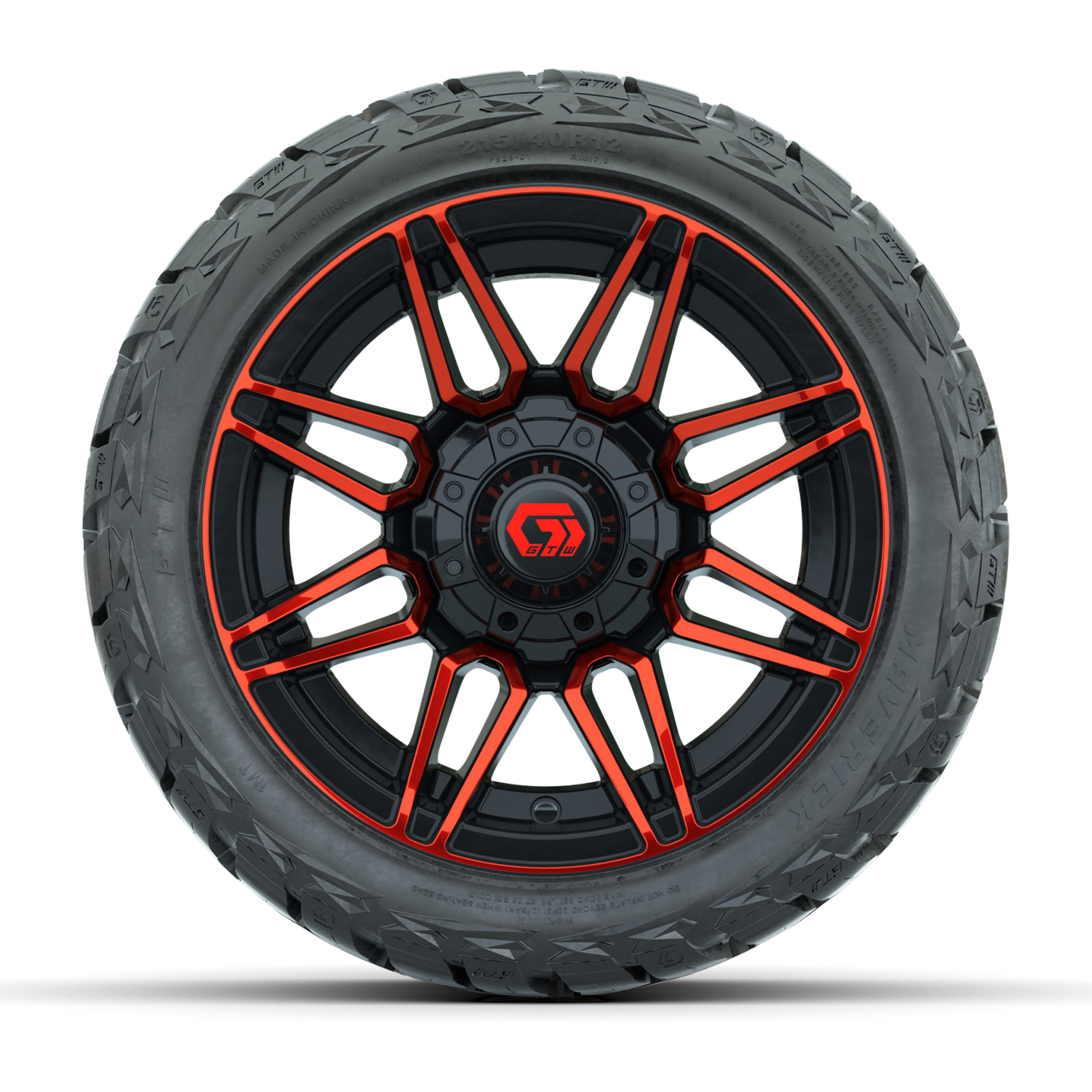 GTW Stealth Gloss Black/Red 12 in Wheels with 215/40-R12 Maverick Low-Profile All-Terrain Tires – Full Set