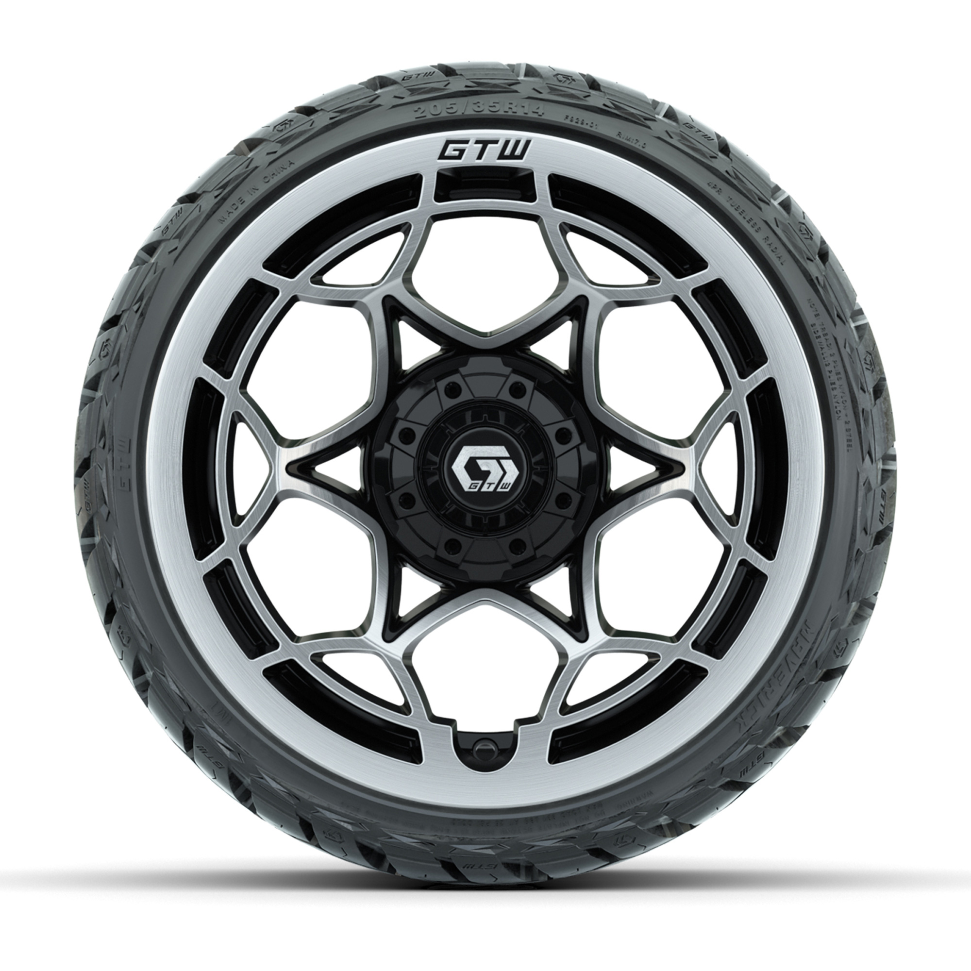 GTW Nexus Gloss Black/Silver 14 in Wheels with 205/35-R14 Maverick Low-Profile All-Terrain Tires – Full Set