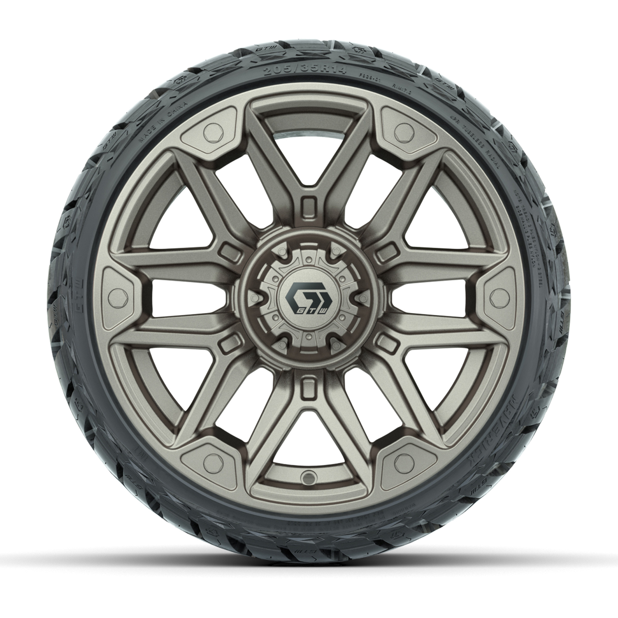 GTW Graffiti Satin Bronze/Black 14 in Wheels with 205/35-R14 Maverick Low-Profile All-Terrain Tires – Full Set