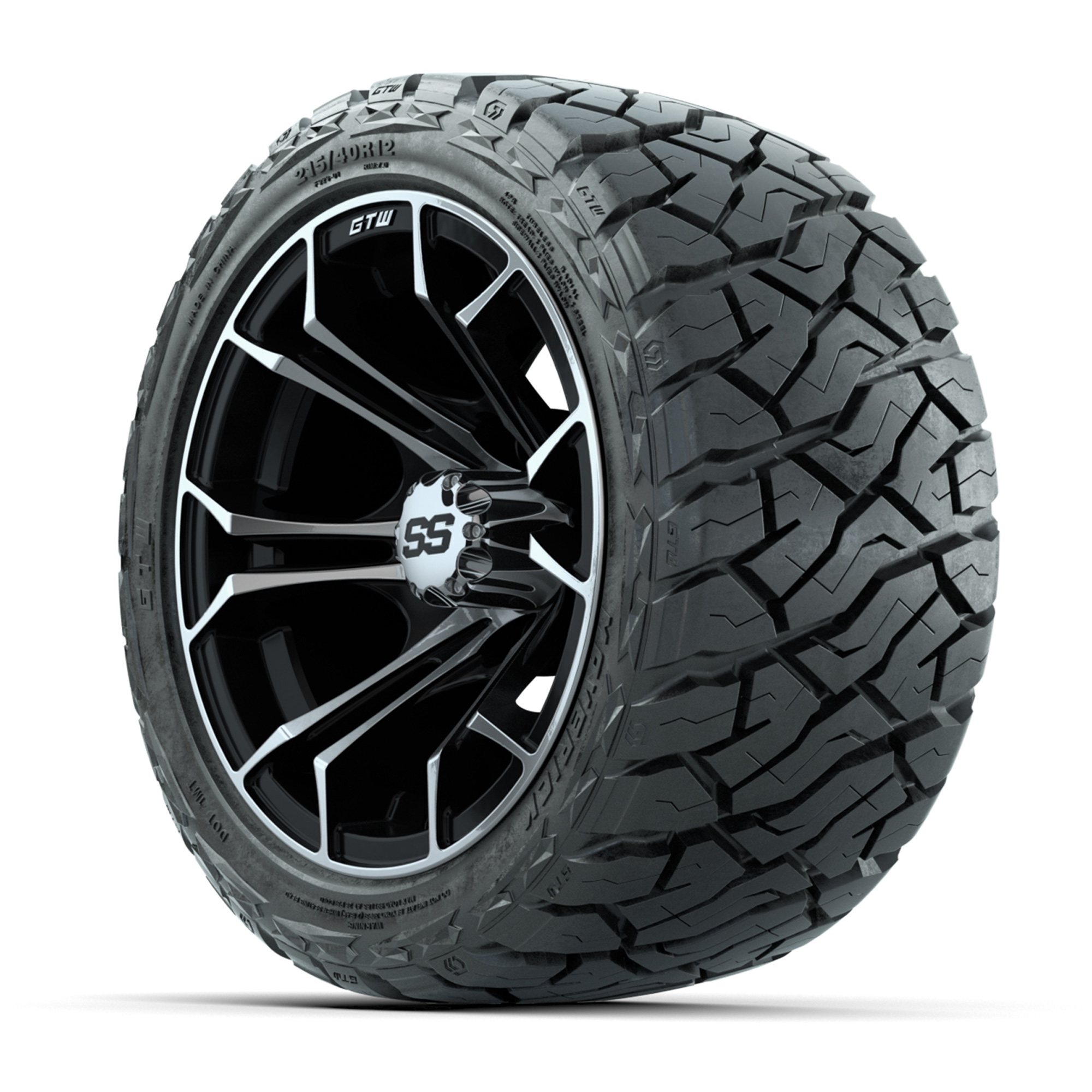 GTW Spyder Black/Machined 12 in Wheels with 215/40-R12 Maverick Low-Profile All-Terrain Tires – Full Set