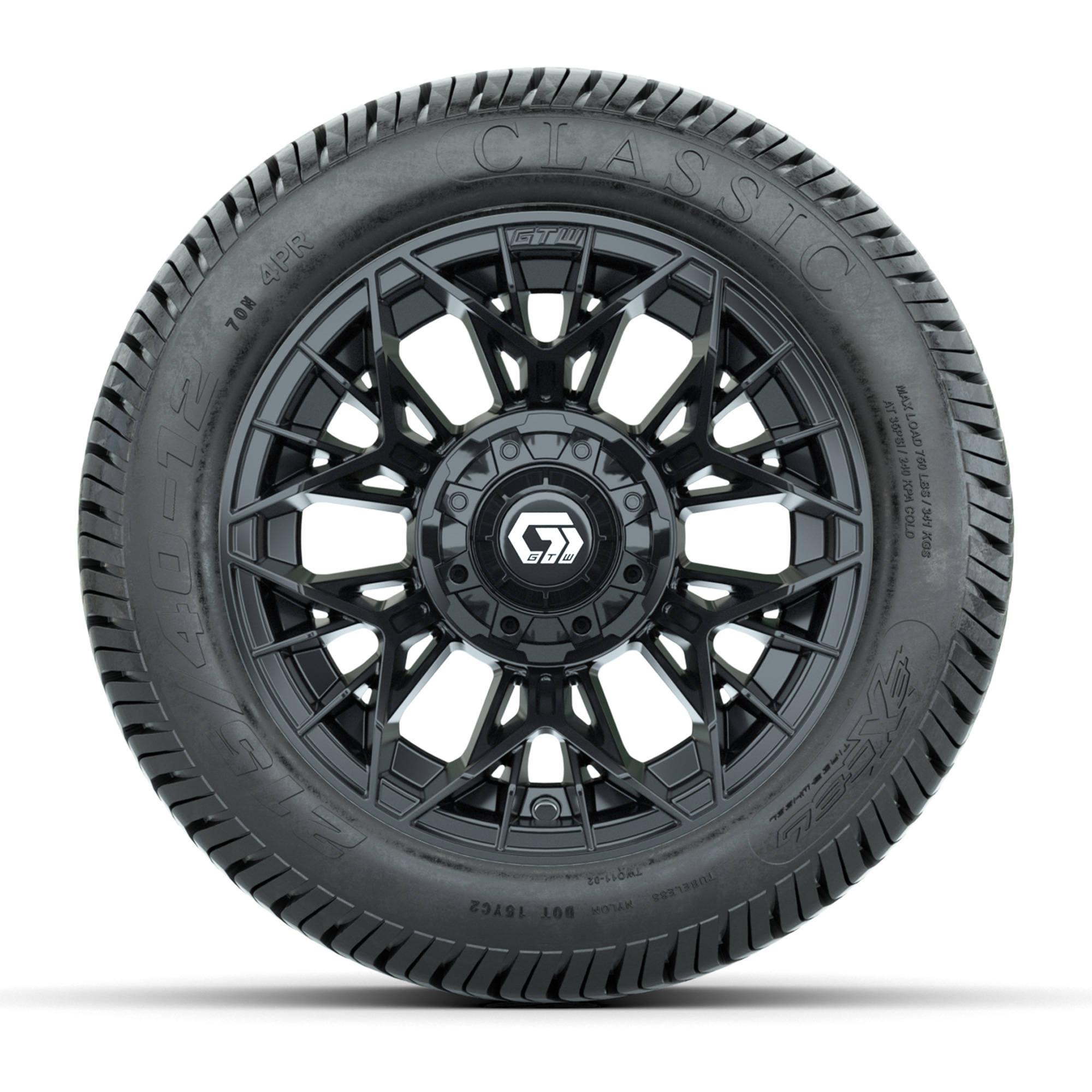 GTW® Stellar Black 12 in Wheels with 215/40-12 Excel Classic Street Tires – Full Set