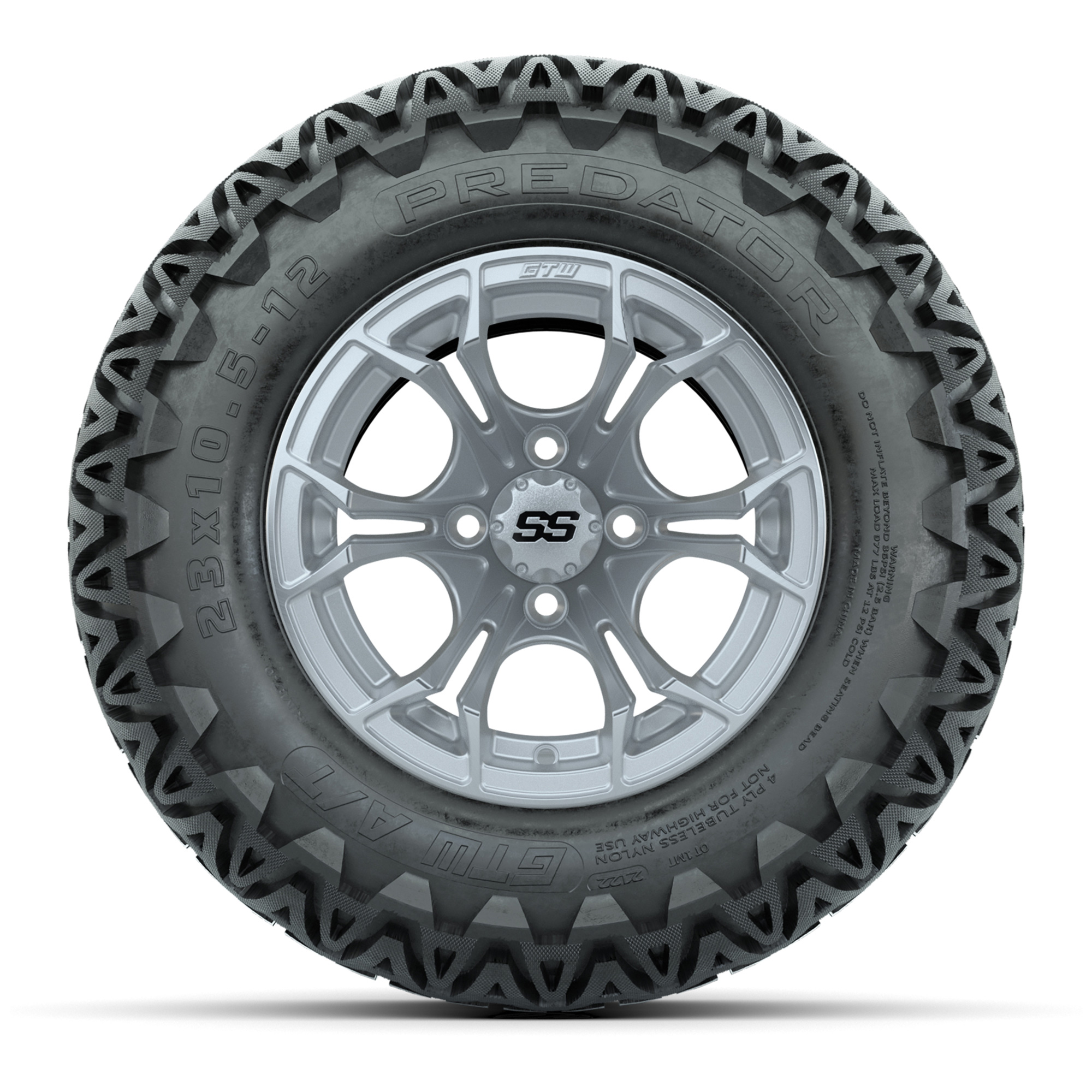 GTW® Spyder Silver Brush 12 in Wheels with 23X10.5-12 Predator All-Terrain Tires – Full Set