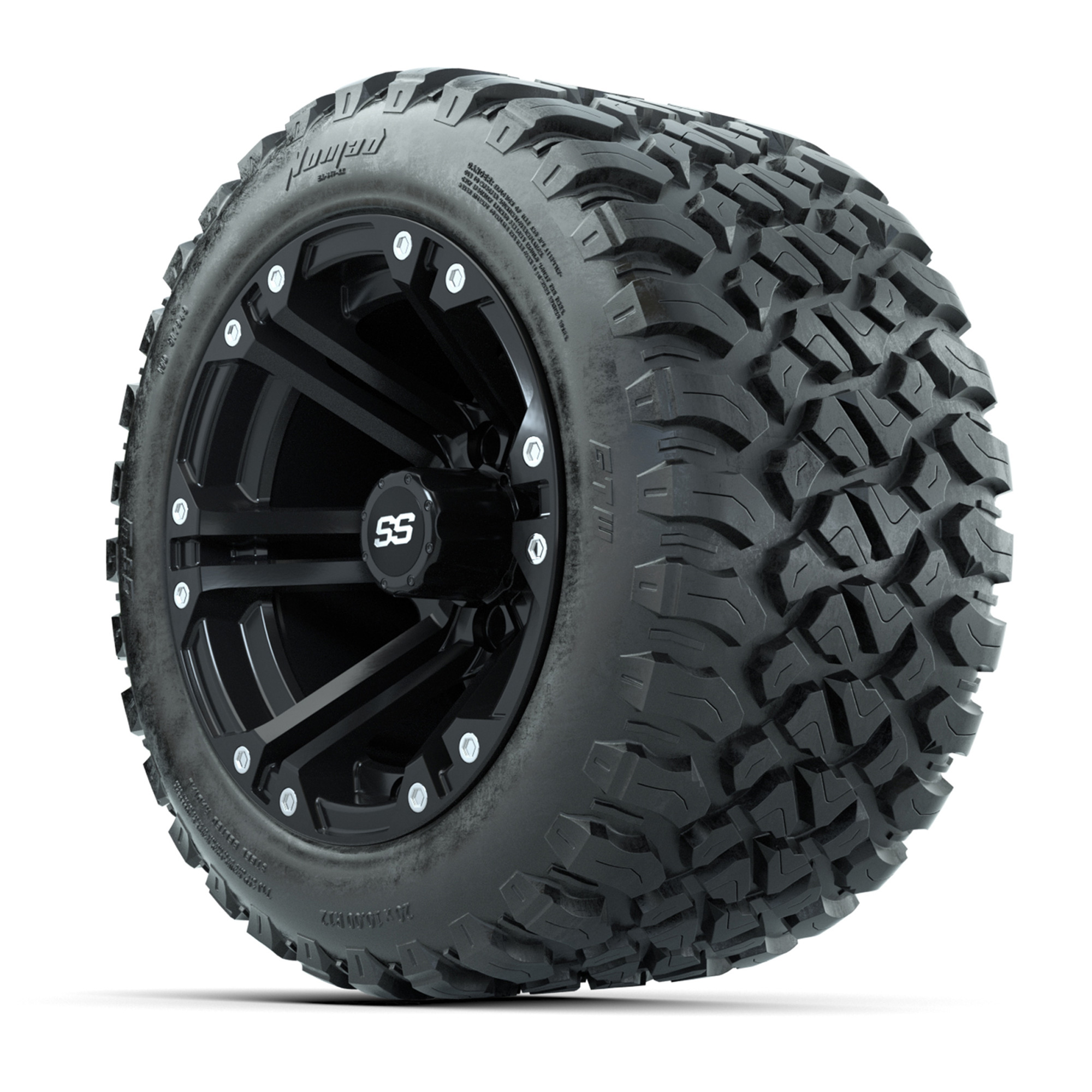 product GTW® Specter Matte Black 12 in Wheels with 20X10-12 Nomad Steel Belt Radial All-Terrain Tires – Full Set Item # A19-1786 A set of (4) 12-inch GTW® Specter Matte Black golf cart wheels mounted on 20X10-12 GTW® Nomad Steel Belt Radial All-Terrain TiresTread Classification:All-Terrain / Off-RoadFull Tire & Wheel Package Includes:(4) 12x7 GTW® Specter Wheels / Matte Black finish / Offset: 3:4 (ET -.25)(4) 20X10-12 Nomad Steel Belt Radial All-Terrain Tires / Tire is approx. 20" tall (4-Ply)(4) Center capsPlease Note: All Wheels are 4 on 4 Hole / Lug Pattern unless otherwise specified.Tech Tips:This Tire & Wheel Combo Requires a Lift Kit (Tire is approx. 20" OD)Please Check and Adjust PSI in Tires Before Operation (Recommended Inflation Can Be Found on Sidewall of Tire)Tire & Wheel Packages are mounted and Inflated Before Shipping, Free of ChargeAll Wheels Have a lug pattern of "4x101.6mm"Lug Nuts Sold SeparatelyStandard Black Lug Nuts #LUG16SBMetric Black Lug Nuts #LUG16MB (Yamaha Models) Find A Dealer