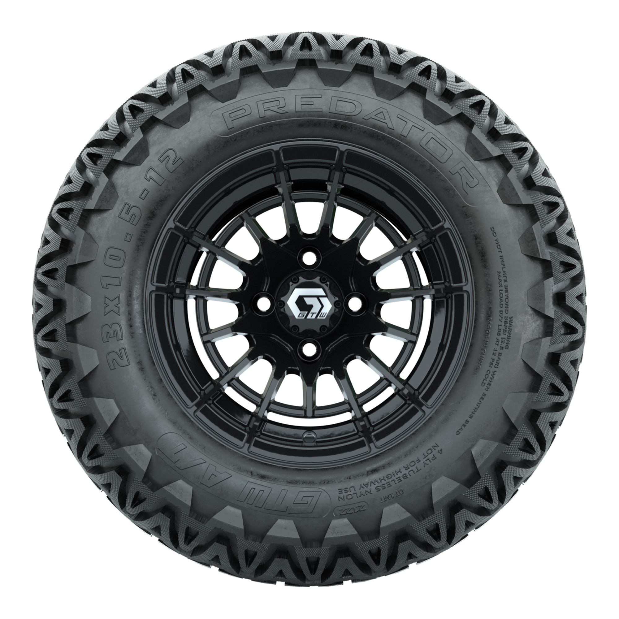 GTW® Boost Gloss Black 12 in Wheels with 23X10.5-12 Predator All-Terrain Tires – Full Set