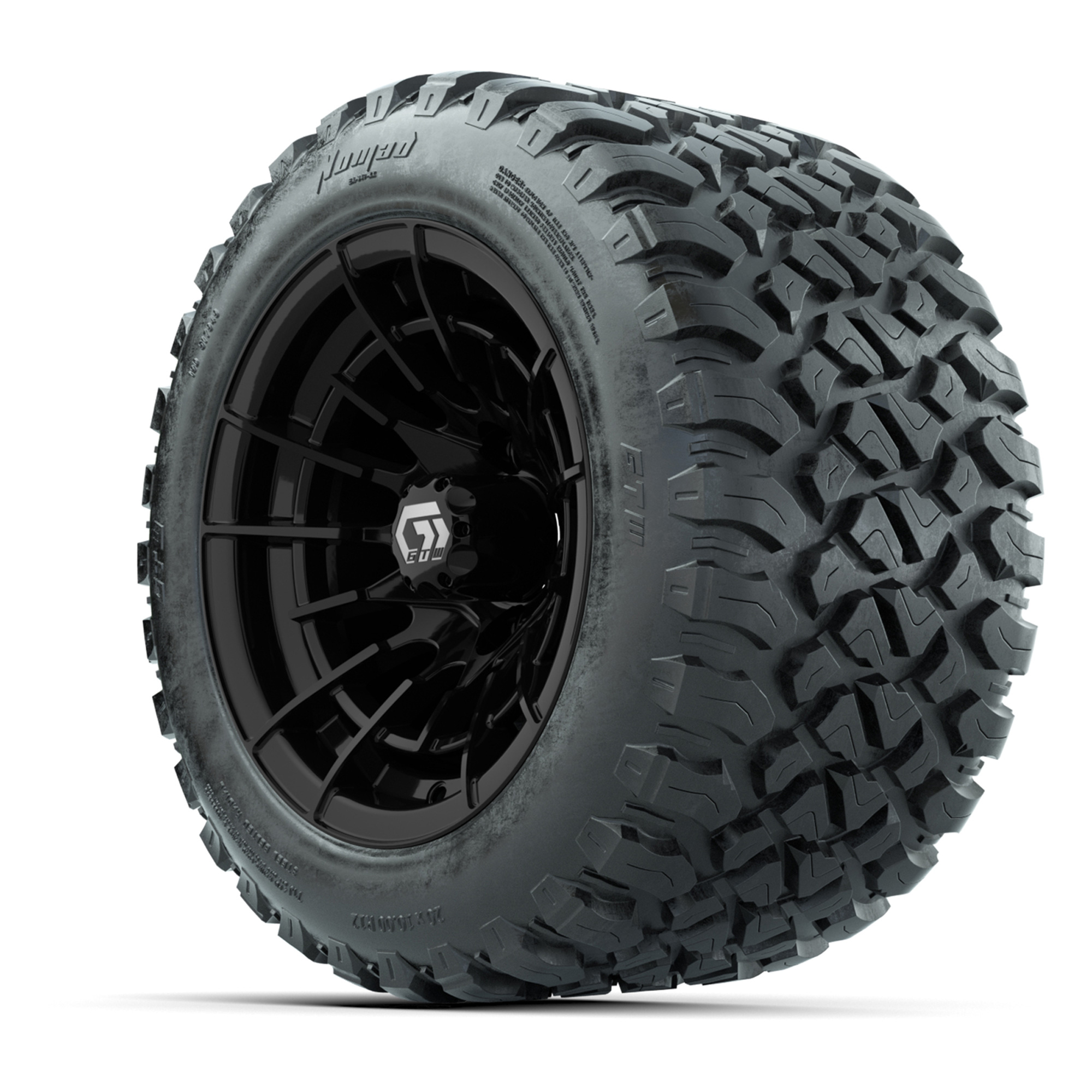 product GTW® Boost Gloss Black 12 in Wheels with 20X10-12 Nomad Steel Belt Radial All-Terrain Tires – Full Set Item # A19-1833 A set of (4) 12-inch GTW® Boost Gloss Black golf cart wheels mounted on 20X10-12 GTW® Nomad Steel Belt Radial All-Terrain TiresTread Classification:All-Terrain / Off-RoadFull Tire & Wheel Package Includes:(4) 12x7 GTW® Boost Wheels / Gloss Black finish / Offset: 3:4 (ET -.25)(4) 20X10-12 Nomad Steel Belt Radial All-Terrain Tires / Tire is approx. 20" tall (4-Ply)(4) Center capsPlease Note: All Wheels are 4 on 4 Hole / Lug Pattern unless otherwise specified.Tech Tips:This Tire & Wheel Combo Requires a Lift Kit (Tire is approx. 20" OD)Please Check and Adjust PSI in Tires Before Operation (Recommended Inflation Can Be Found on Sidewall of Tire)Tire & Wheel Packages are mounted and Inflated Before Shipping, Free of ChargeAll Wheels Have a lug pattern of "4x101.6mm"Lug Nuts Sold SeparatelyStandard Black Lug Nuts #LUG16SBMetric Black Lug Nuts #LUG16MB (Yamaha Models) Find A Dealer