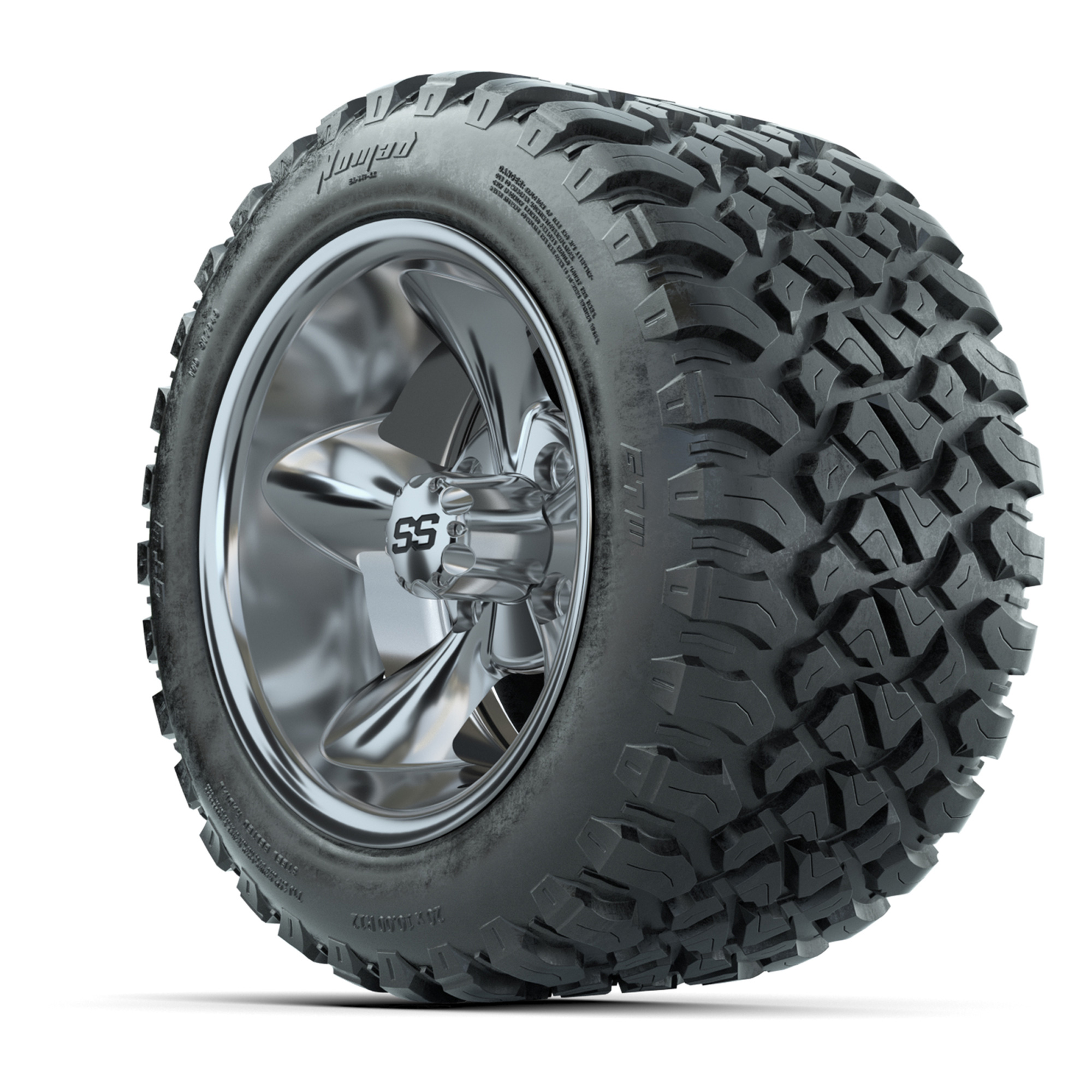 product GTW® Godfather Chrome 12 in Wheels with 20X10-12 Nomad Steel Belt Radial All-Terrain Tires – Full Set Item # A19-2016 A set of (4) 12-inch GTW® Godfather Chrome golf cart wheels mounted on 20X10-12 GTW® Nomad Steel Belt Radial All-Terrain TiresTread Classification:All-Terrain / Off-RoadFull Tire & Wheel Package Includes:(4) 12x7 GTW® Godfather Wheels / Chrome finish / Offset: 3:4 (ET -.25)(4) 20X10-12 Nomad Steel Belt Radial All-Terrain Tires / Tire is approx. 20" tall (4-Ply)(4) Center capsPlease Note: All Wheels are 4 on 4 Hole / Lug Pattern unless otherwise specified.Tech Tips:This Tire & Wheel Combo Requires a Lift Kit (Tire is approx. 20" OD)Please Check and Adjust PSI in Tires Before Operation (Recommended Inflation Can Be Found on Sidewall of Tire)Tire & Wheel Packages are mounted and Inflated Before Shipping, Free of ChargeAll Wheels Have a lug pattern of "4x101.6mm"Lug Nuts Sold SeparatelyStandard Black Lug Nuts #LUG16SBMetric Black Lug Nuts #LUG16MB (Yamaha Models) Find A Dealer