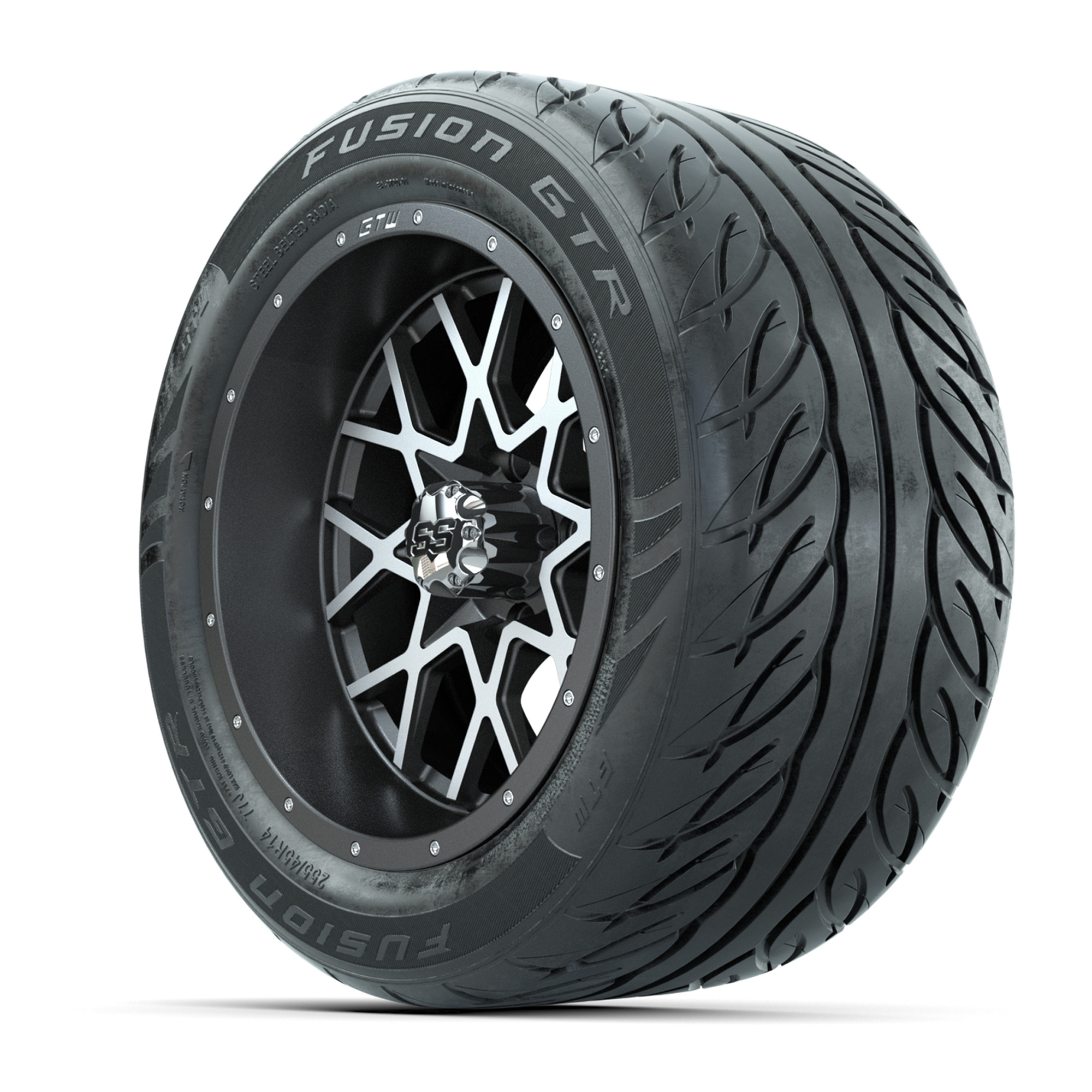 product GTW® Vortex 2 Matte Gray/Machined 14 in Wheels with 255/45-R14 Fusion GTR Steel Belt Radial Street Tires – Full Set Item # A19-2447 A set of (4) 14-inch GTW® Vortex 2 Matte Gray/Machined golf cart wheels mounted on 255/45-R14 Fusion GTR Steel Belt Radial Street TiresTread Classification:Street/CourseFull kit includes:(4) 14” GTW® Vortex Wheels / Matte Gray/Machined Finish / Offset: 3:4 (ET -.25)(4) 255/45-R14 GTW® Fusion GTR Steel Belt Radial Street Tires / Tire is approx. 23” tall (4-Ply)(4) Color match capsLug nuts sold separatelyPlease Note: All Wheels are 4 on 4 Hole / Lug Pattern (4x101.6mm) unless otherwise specified.Tech Tips:We Recommend a Lift Kit for This Tire & Wheel KitTire & Wheel Combos are mounted and Inflated Before Shipping, Free of Charge Please Check and Adjust PSI in Tires Before Operation (Recommended Inflation Can Be Found on Sidewall of Tire)All Wheels Have a lug pattern of "4x101.6mm"Lug Nuts Sold Separately: Standard: #LUG4S (Standard Chrome Lug Nuts) Metric: #LUG4M (Yamaha Models) Find A Dealer