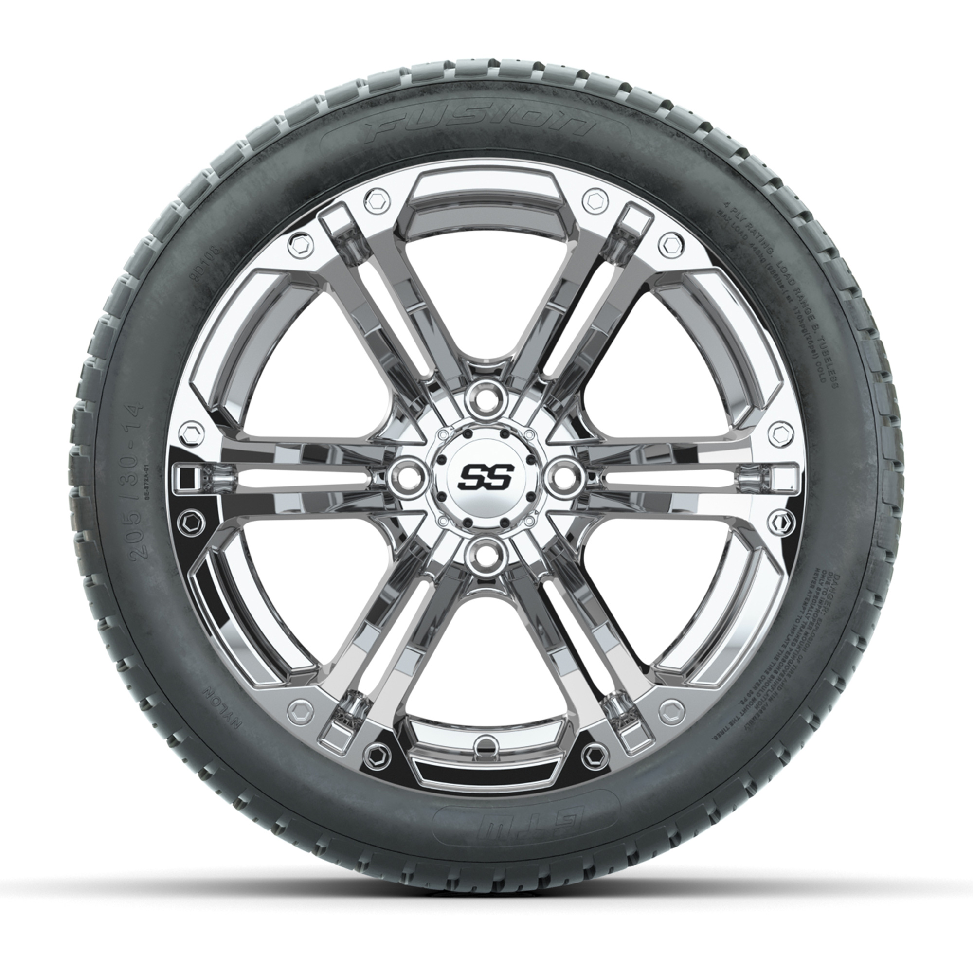GTW Specter Chrome 14 in Wheels with 205/30-R14 Fusion Street Tires – Set of 4