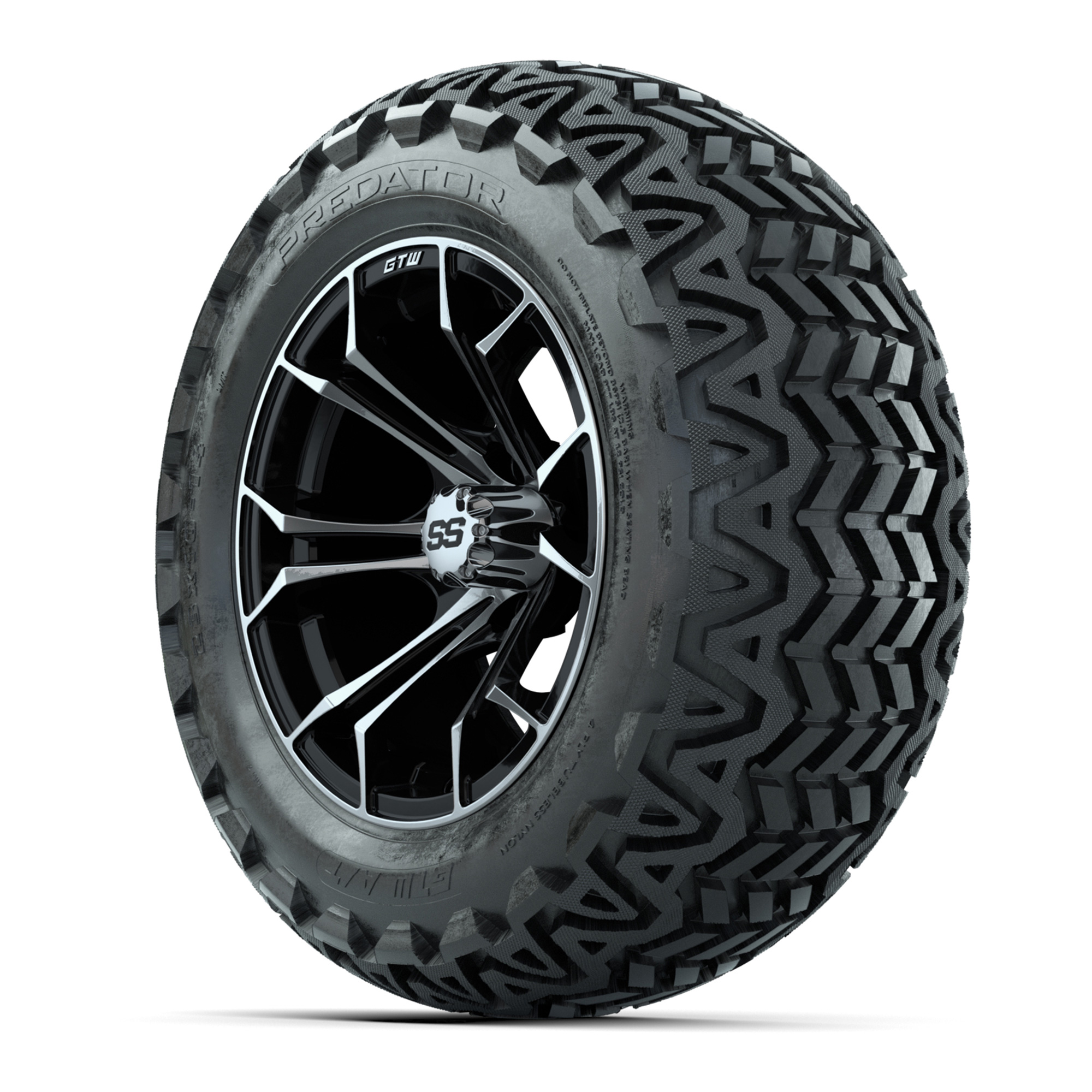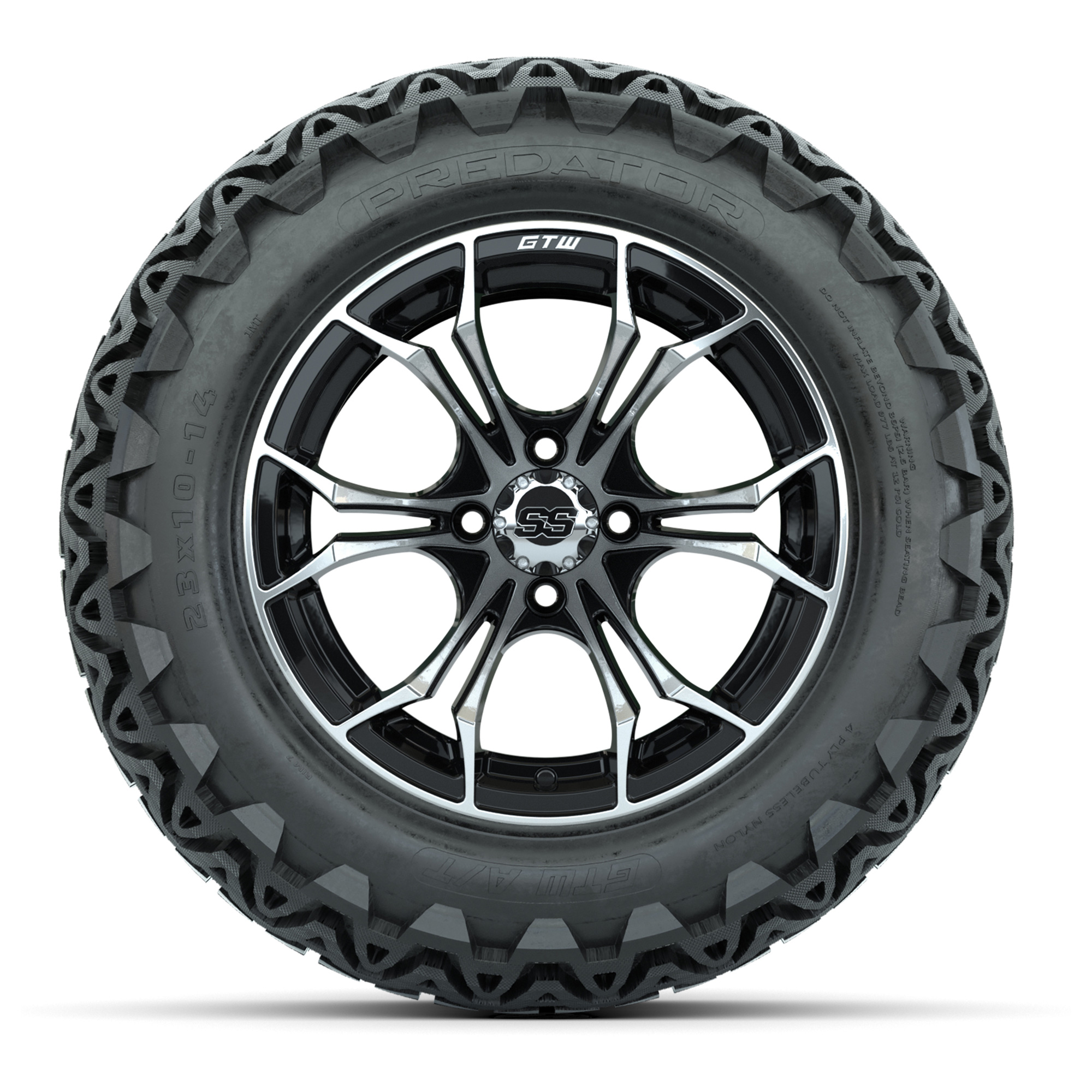 GTW Spyder Machined/Black 14 in Wheels with 23x10-14 GTW Predator All-Terrain Tires – Full Set