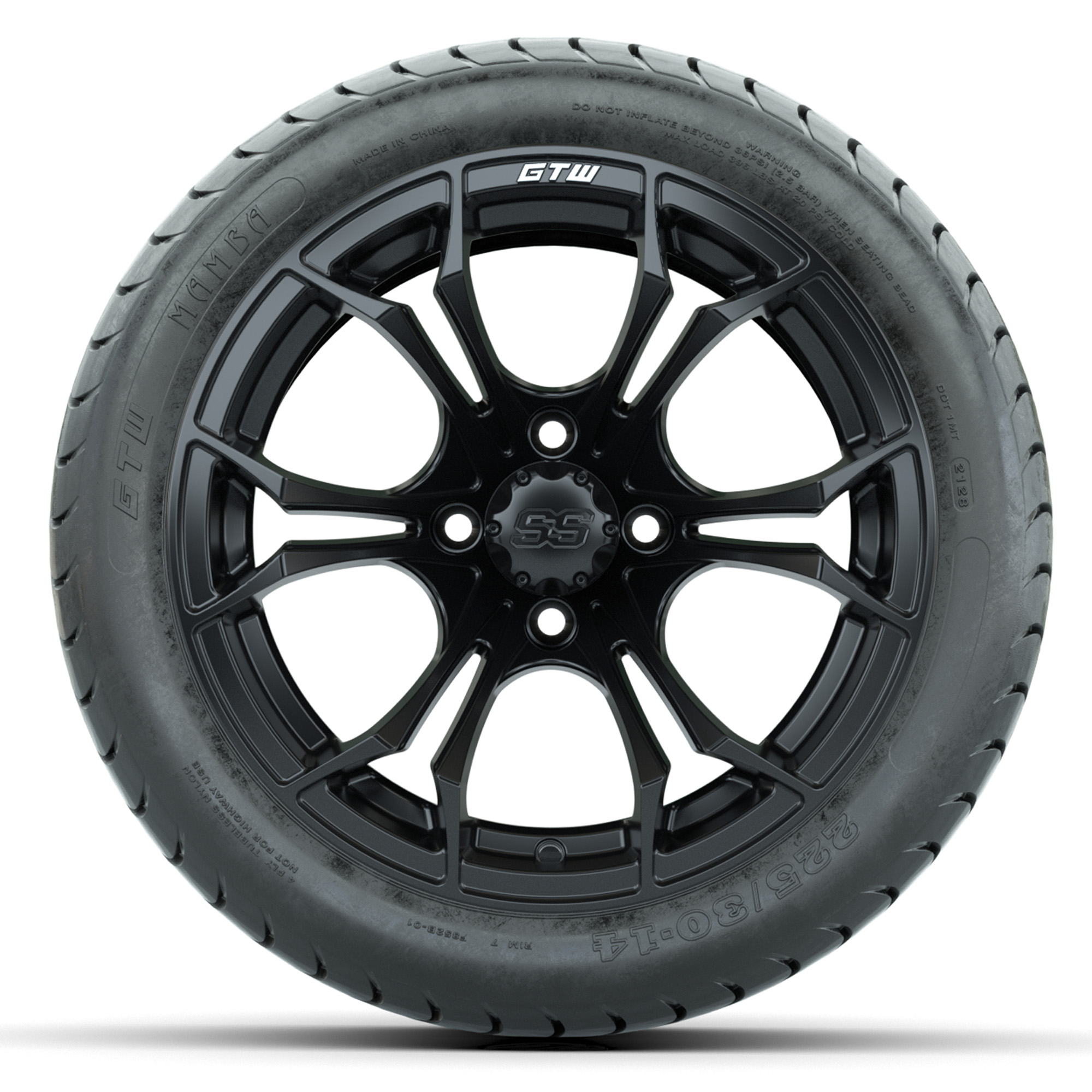 GTW Spyder Matte Black 14 in Wheels with 225/30-14 Mamba Street Tires – Full Set