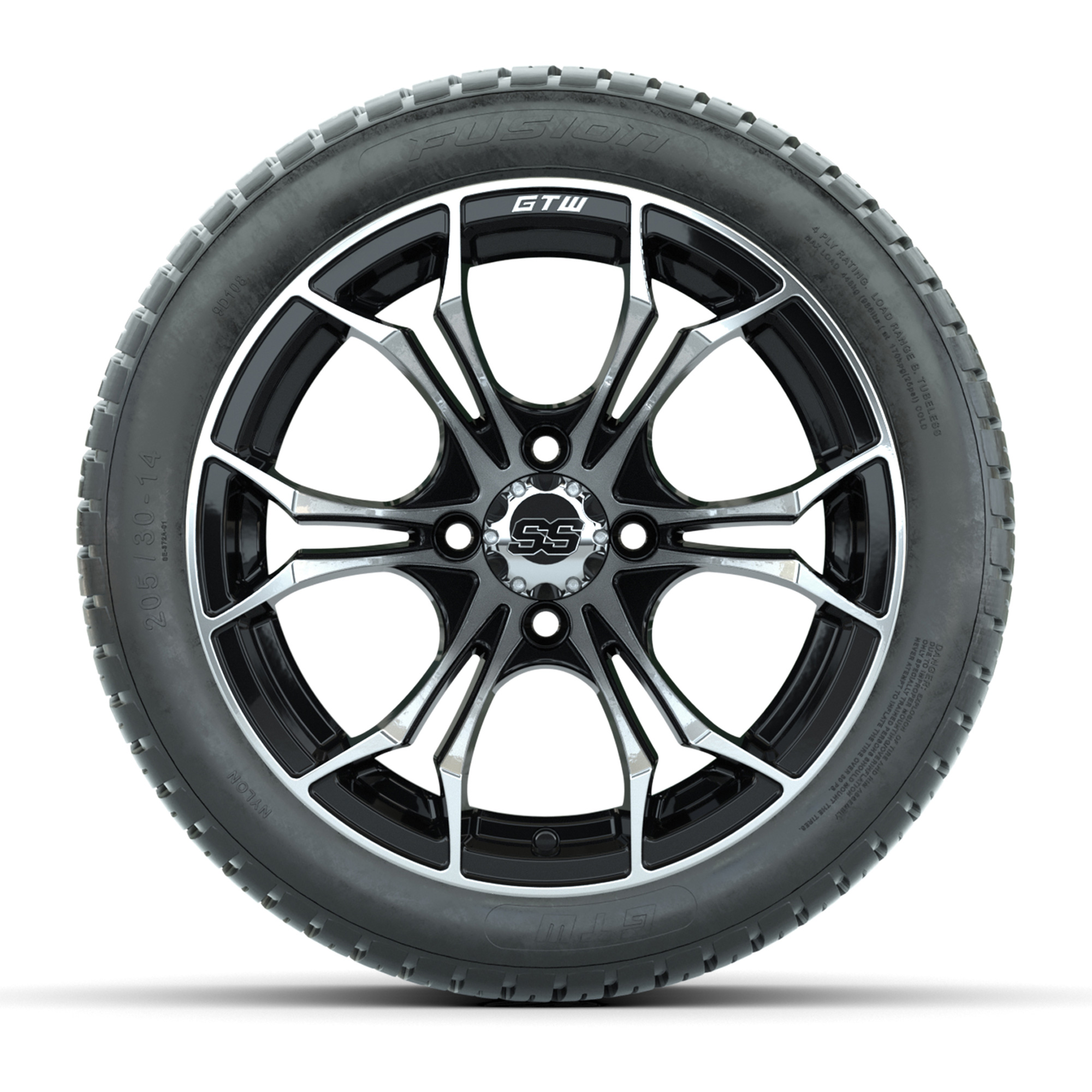 GTW Spyder Machined/Black 14 in Wheels with 205/30-14 Fusion Street Tires – Full Set