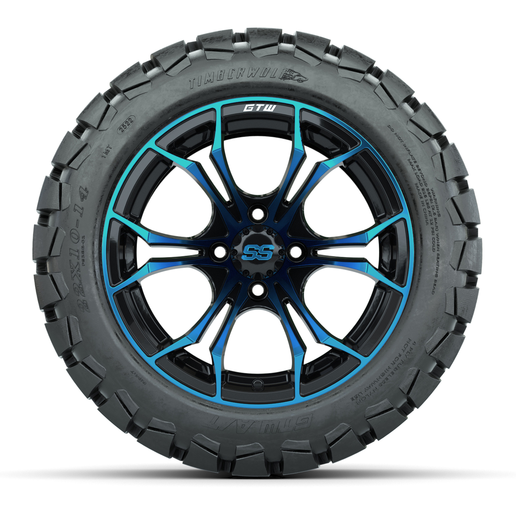 GTW Spyder Blue/Black 14 in Wheels with 22x10-14 GTW Timberwolf All-Terrain Tires – Full Set