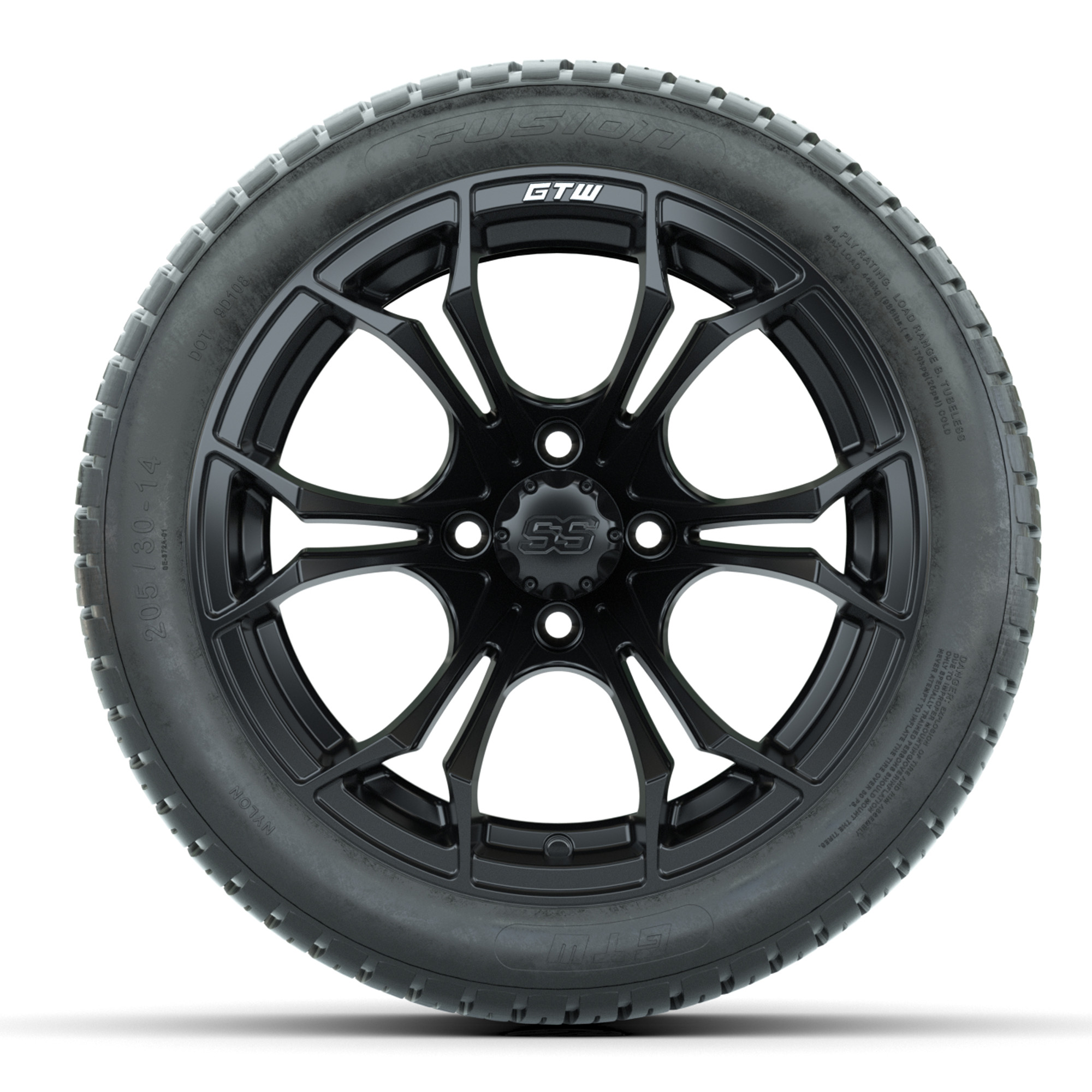 GTW Spyder Matte Black 14 in Wheels with 205/30-14 Fusion Street Tires – Full Set