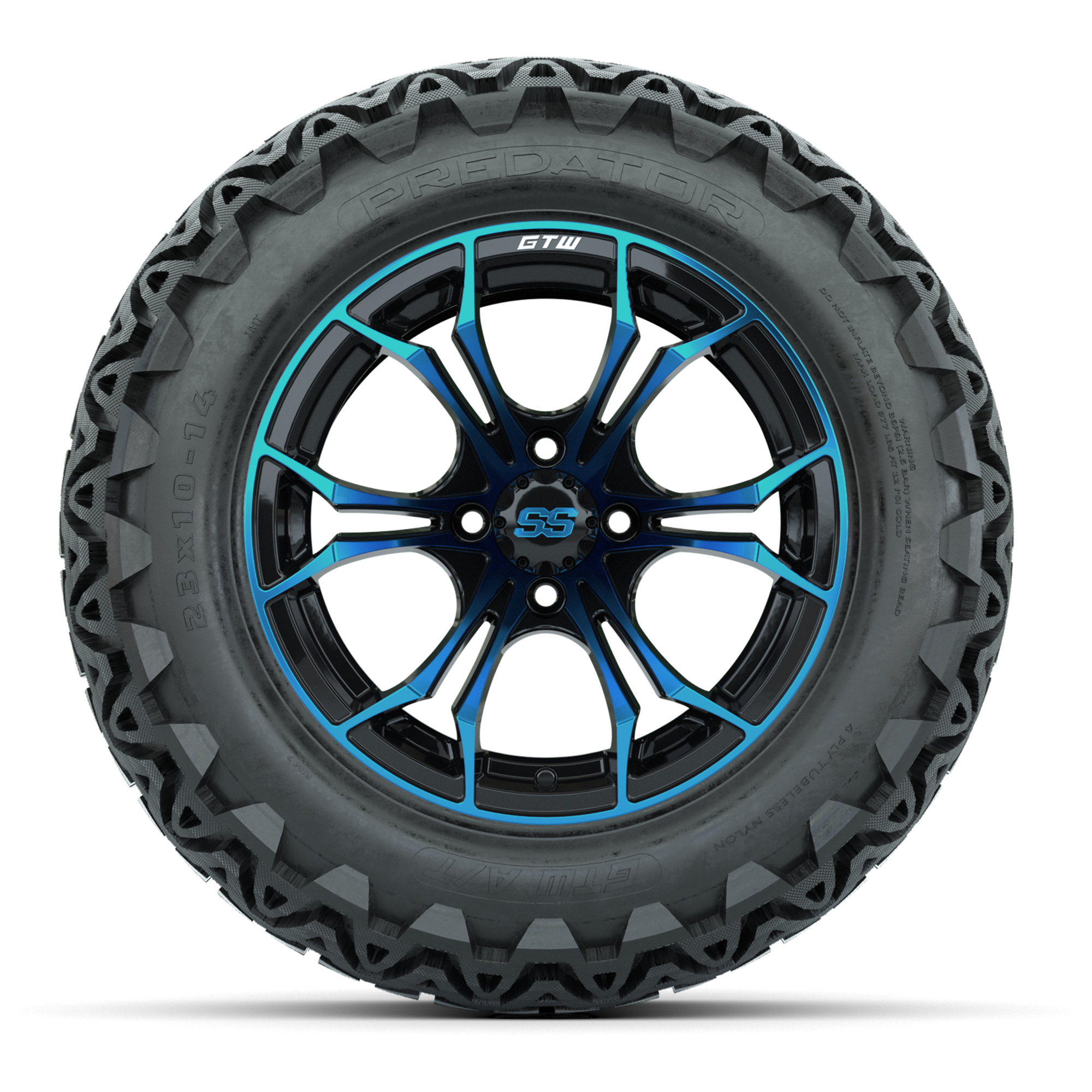 GTW Spyder Blue/Black 14 in Wheels with 23x10-14 GTW Predator All-Terrain Tires – Full Set