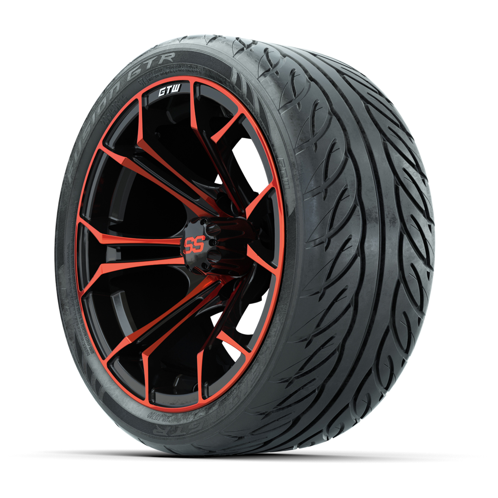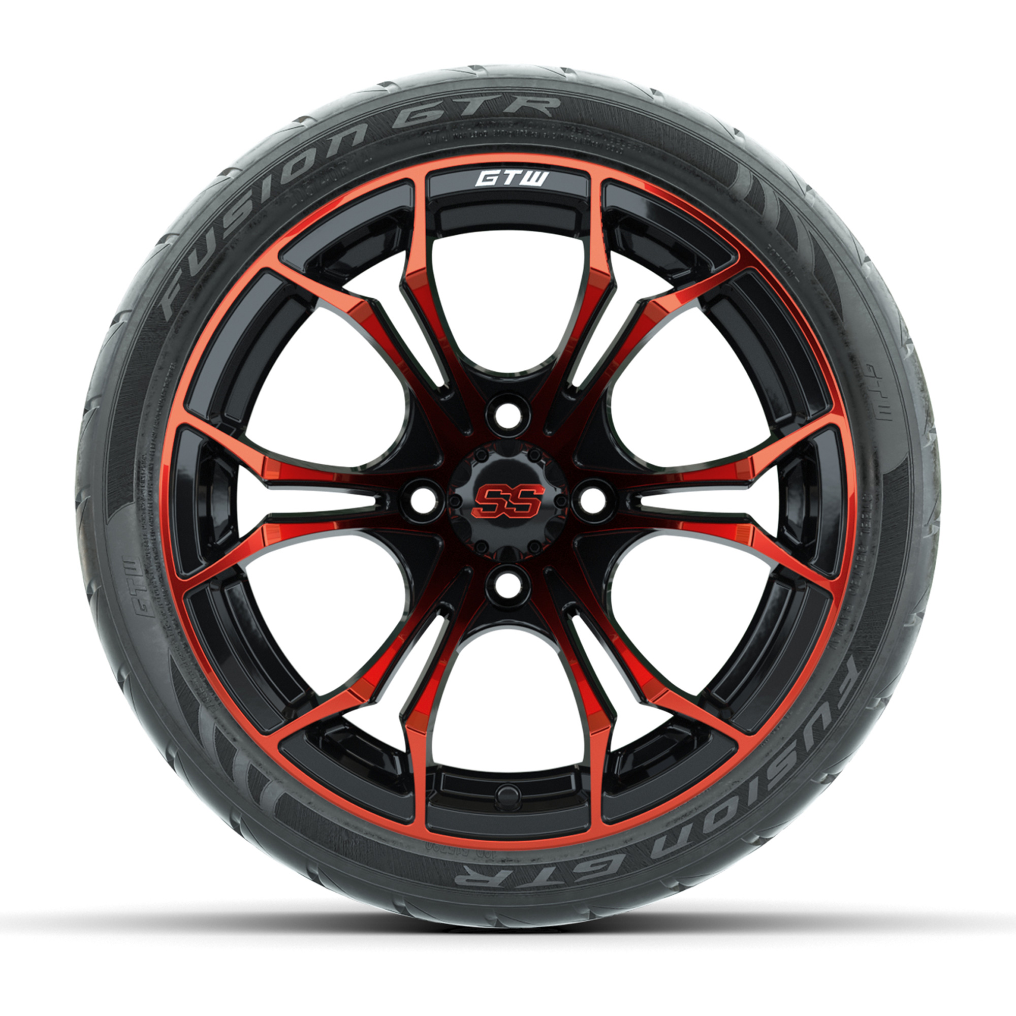 GTW Spyder Red/Black 14 in Wheels with 205/40-R14 Fusion GTR Street Tires – Full Set