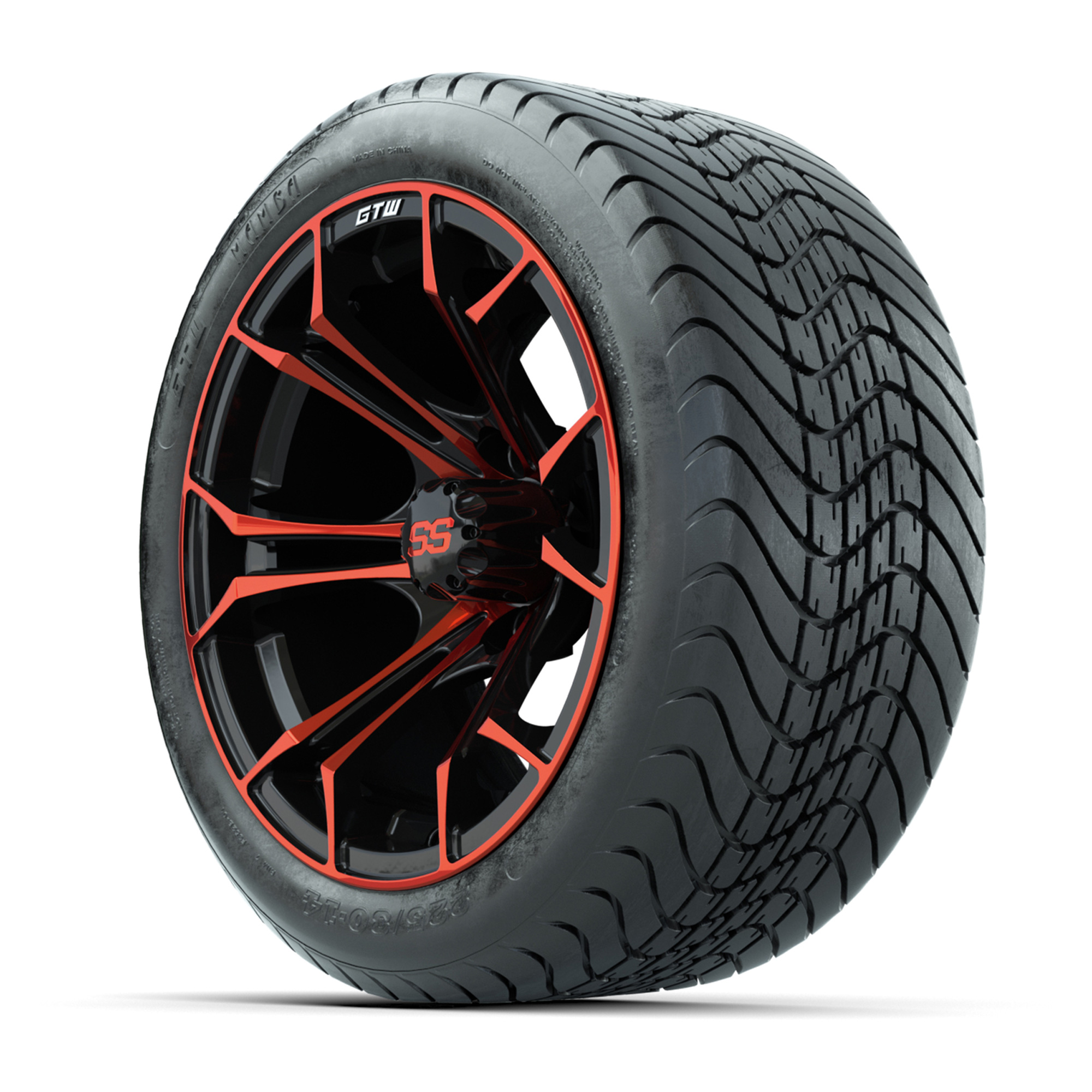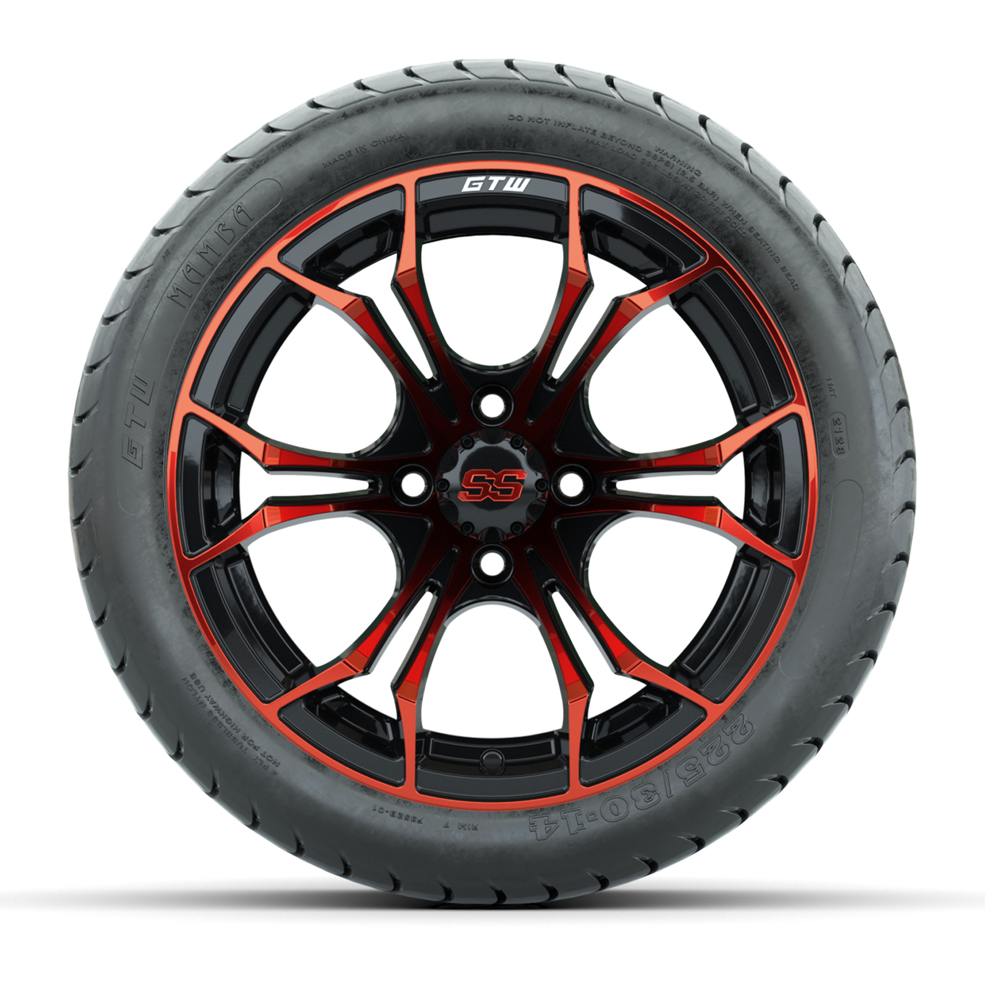 GTW Spyder Red/Black 14 in Wheels with 225/30-14 Mamba Street Tires – Full Set