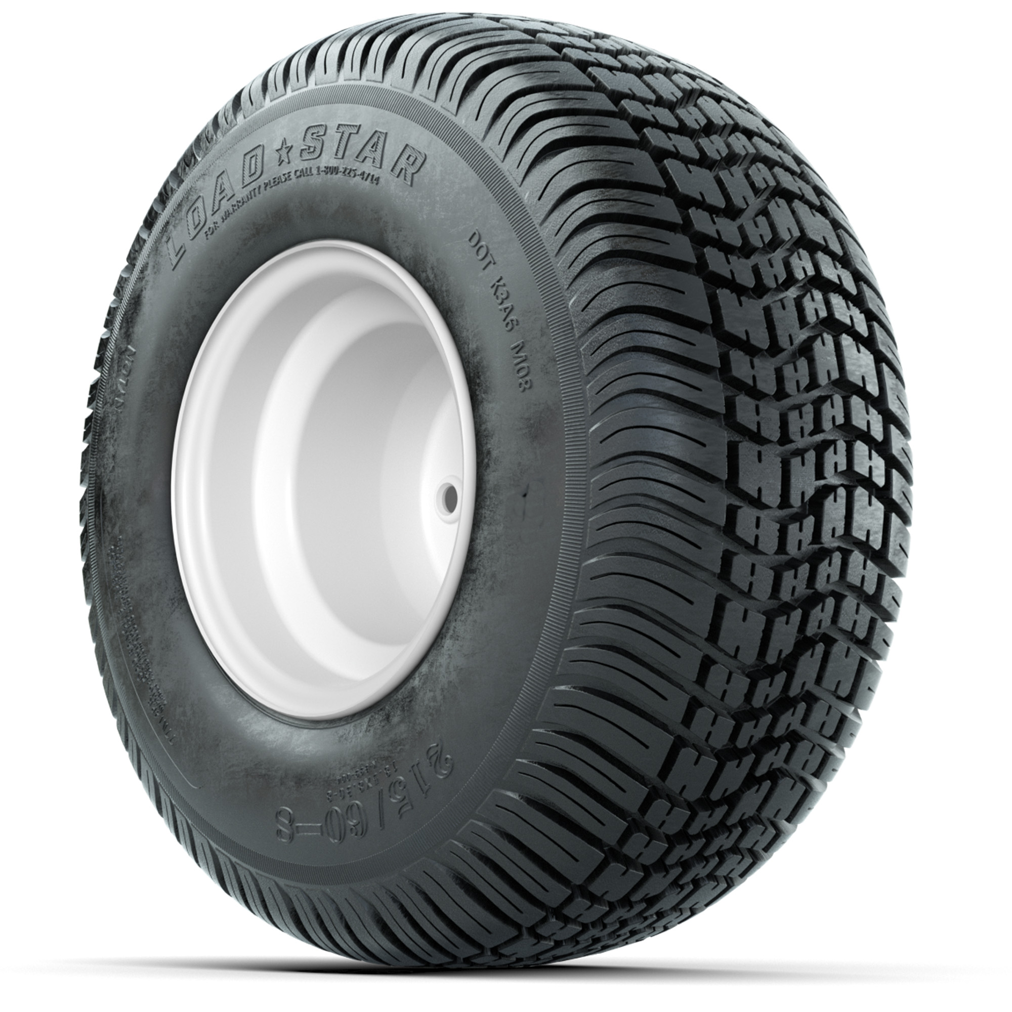 product Set of (4) 8 in White Steel Wheels with 18 in Kenda Load Star Tires Item # A19-716 Tread Classification:Street/Turf/CourseFull kit includes:(4) 8x7 White Steel Wheels / Centered (No Offset)(4) 215/60-8 Kenda Load Star Tires (4-Ply) / Tire is approx. 18” tallReuse Stock LugsPlease Note: All Wheels are 4 on 4 Hole / Lug Pattern unless otherwise specified.Tech Tips:This Tire & Wheel Combo Does Not Require a Lift KitTire & Wheel Combos are mounted and Inflated Before Shipping, Free of Charge Please Check and Adjust PSI in Tires Before Operation (Recommended Inflation Can Be Found on Sidewall of Tire)All Wheels Have a lug pattern of "4x101.6mm" Find A Dealer