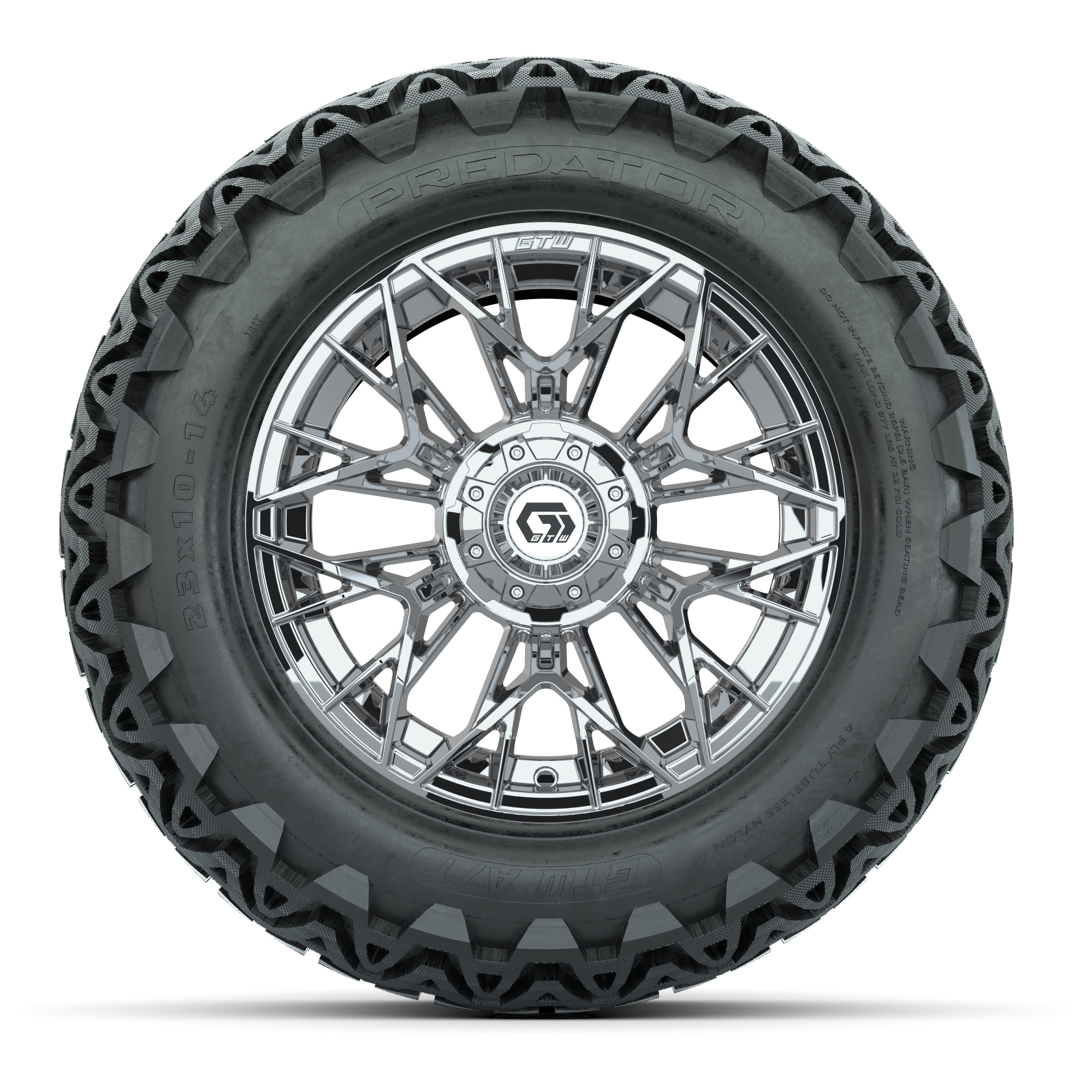Set of (4) 14 in GTW® Stellar Chrome Wheels with 23x10-14 Predator All-Terrain Tires