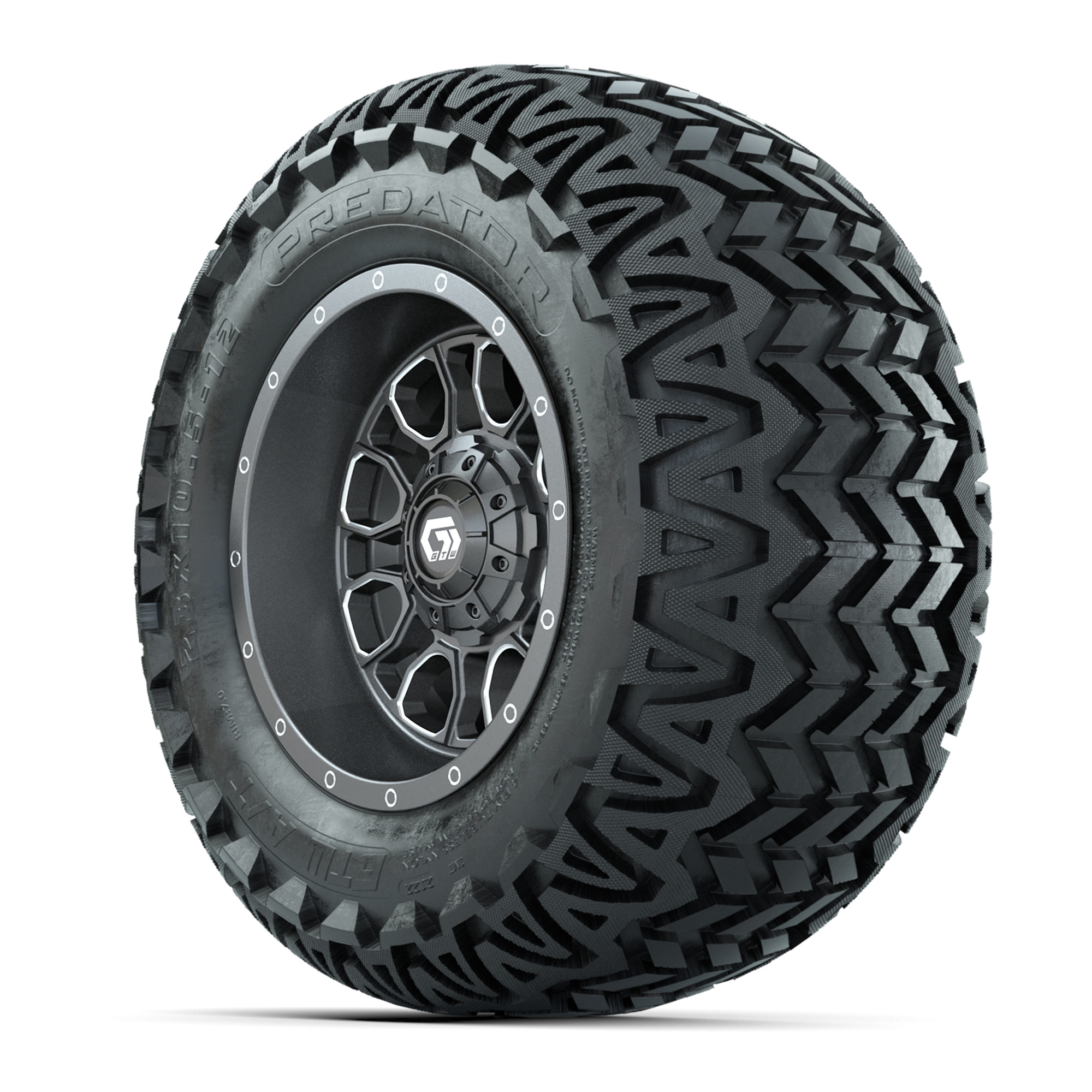 GTW Volt Gunmetal/Machined 12 in Wheels with 23x10.5-12 Predator All Terrain Tires – Full Set
