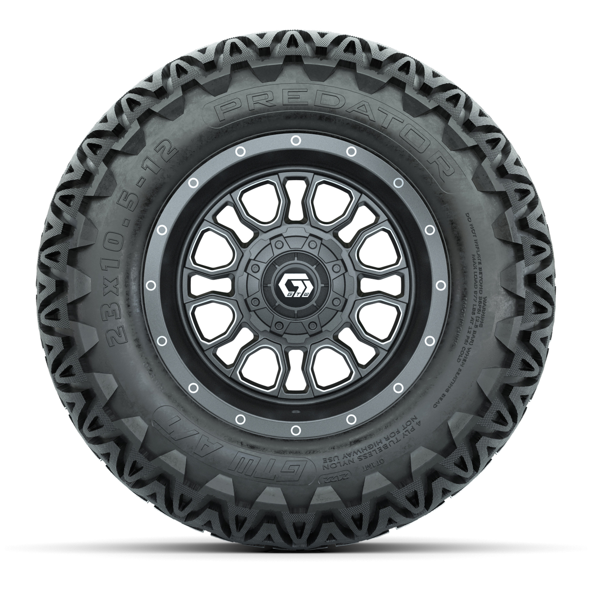 • (4) 23x10.5-12 GTW® Predator All-Terrain Tires / Tire is approx. 23” tall (4-Ply)