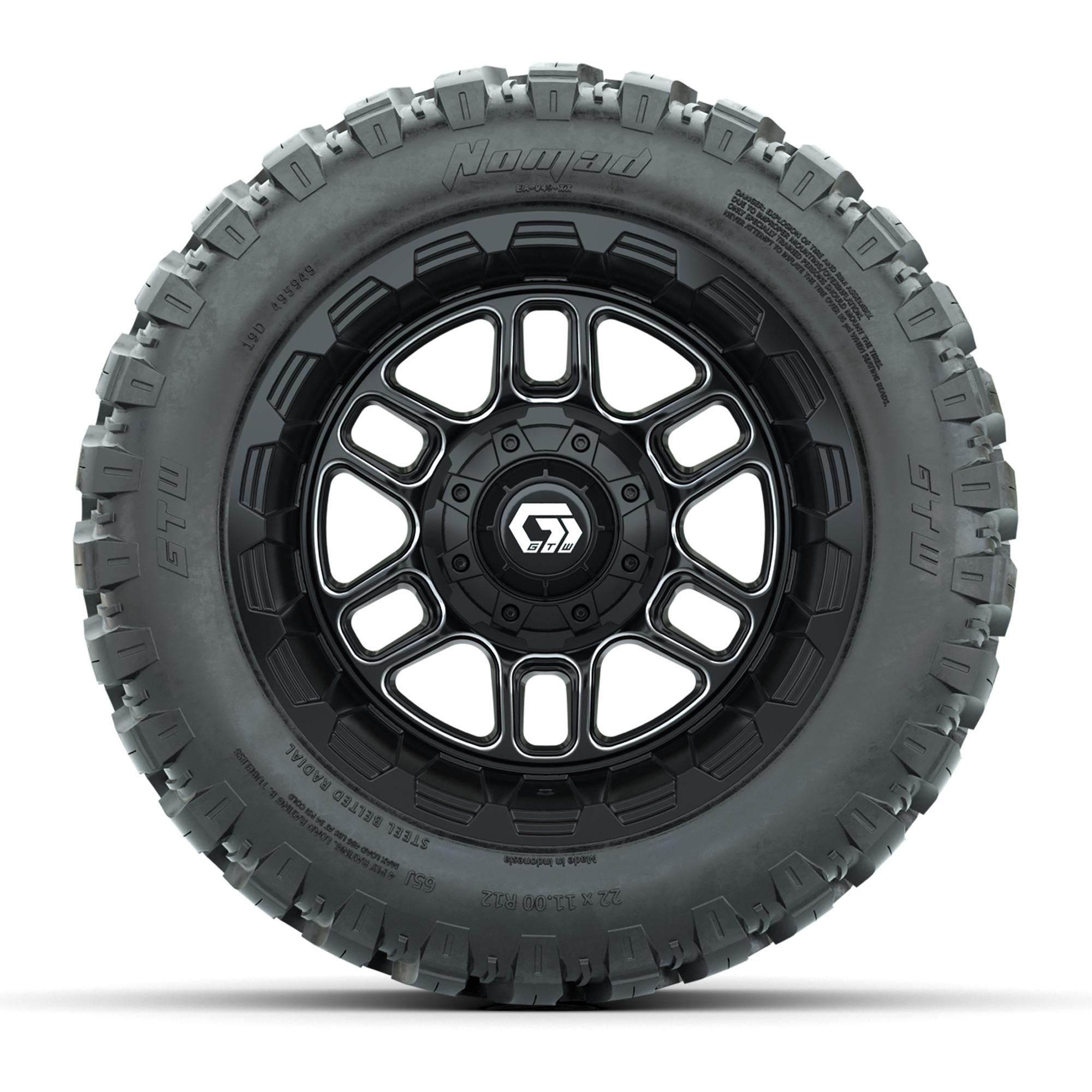 • (4) 22x11-R12 GTW® Nomad Steel Belted All-Terrain Tires / Tire is approx. 22” tall (4-Ply)