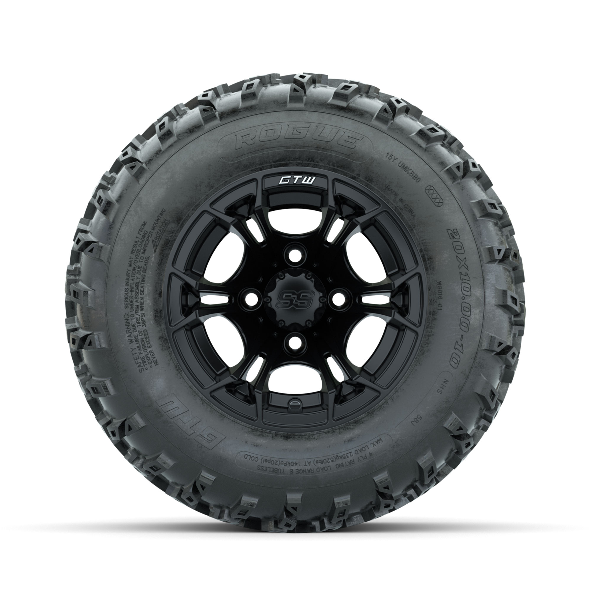 GTW Spyder Matte Black 10 in Wheels with 20x10.00-10 Rogue All Terrain Tires – Full Set