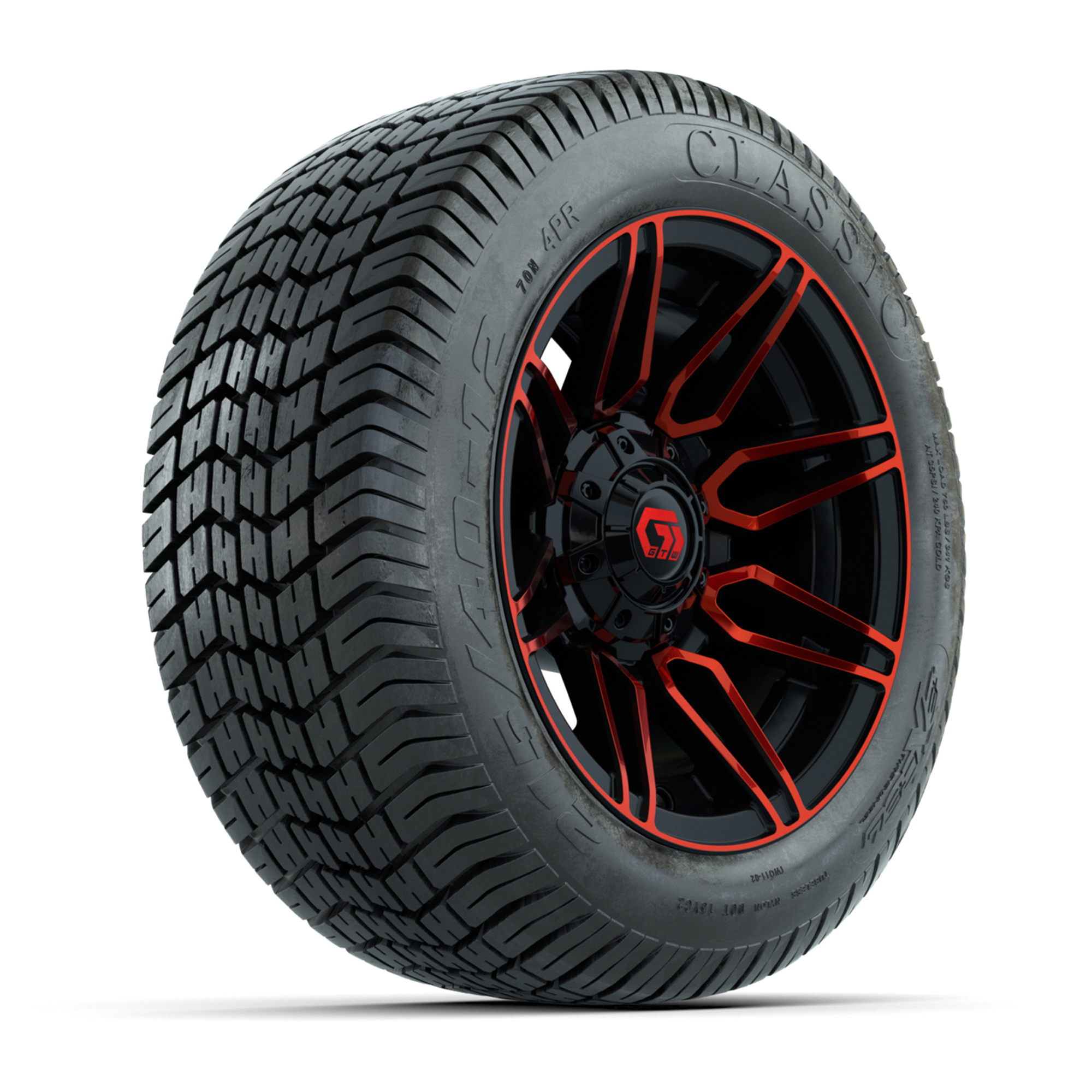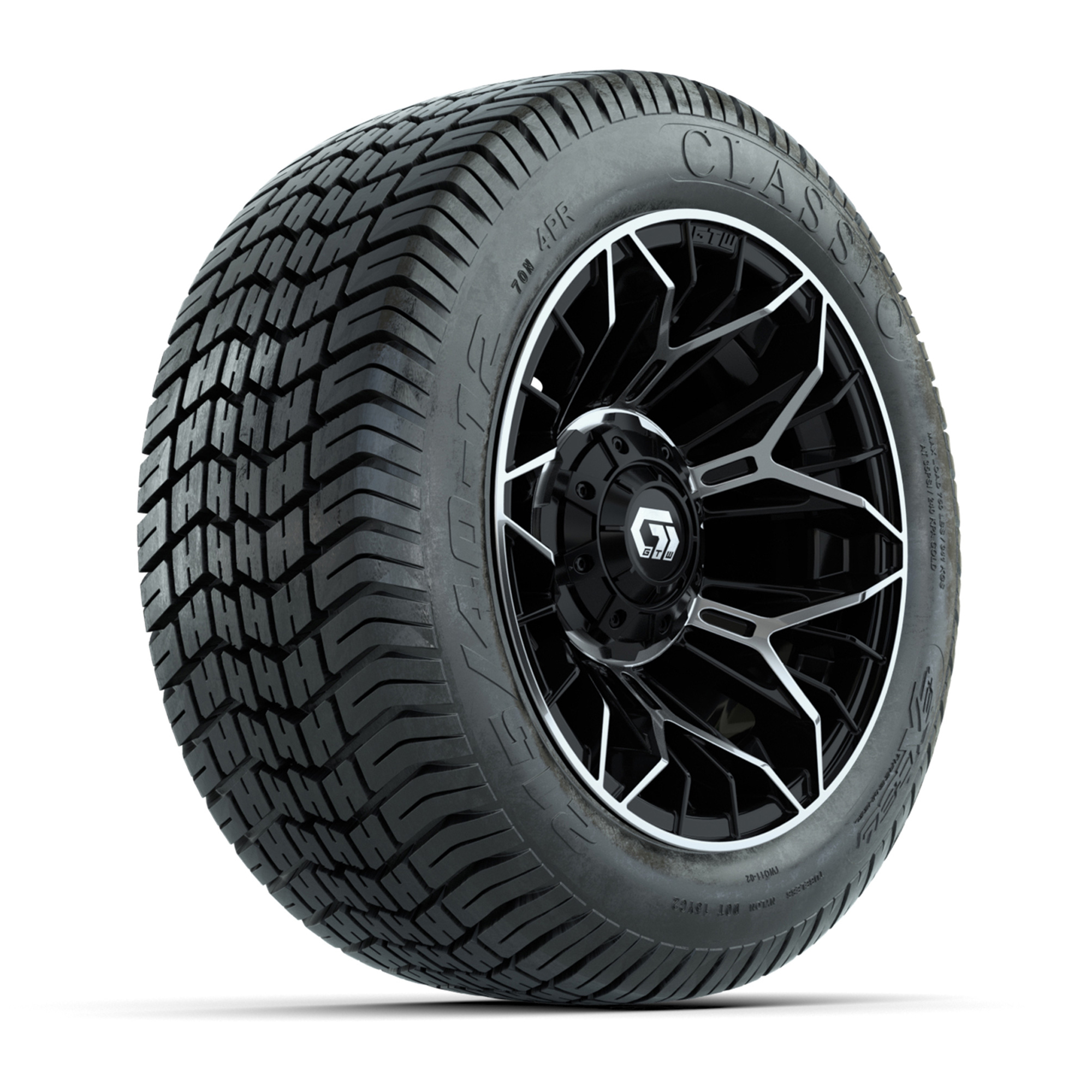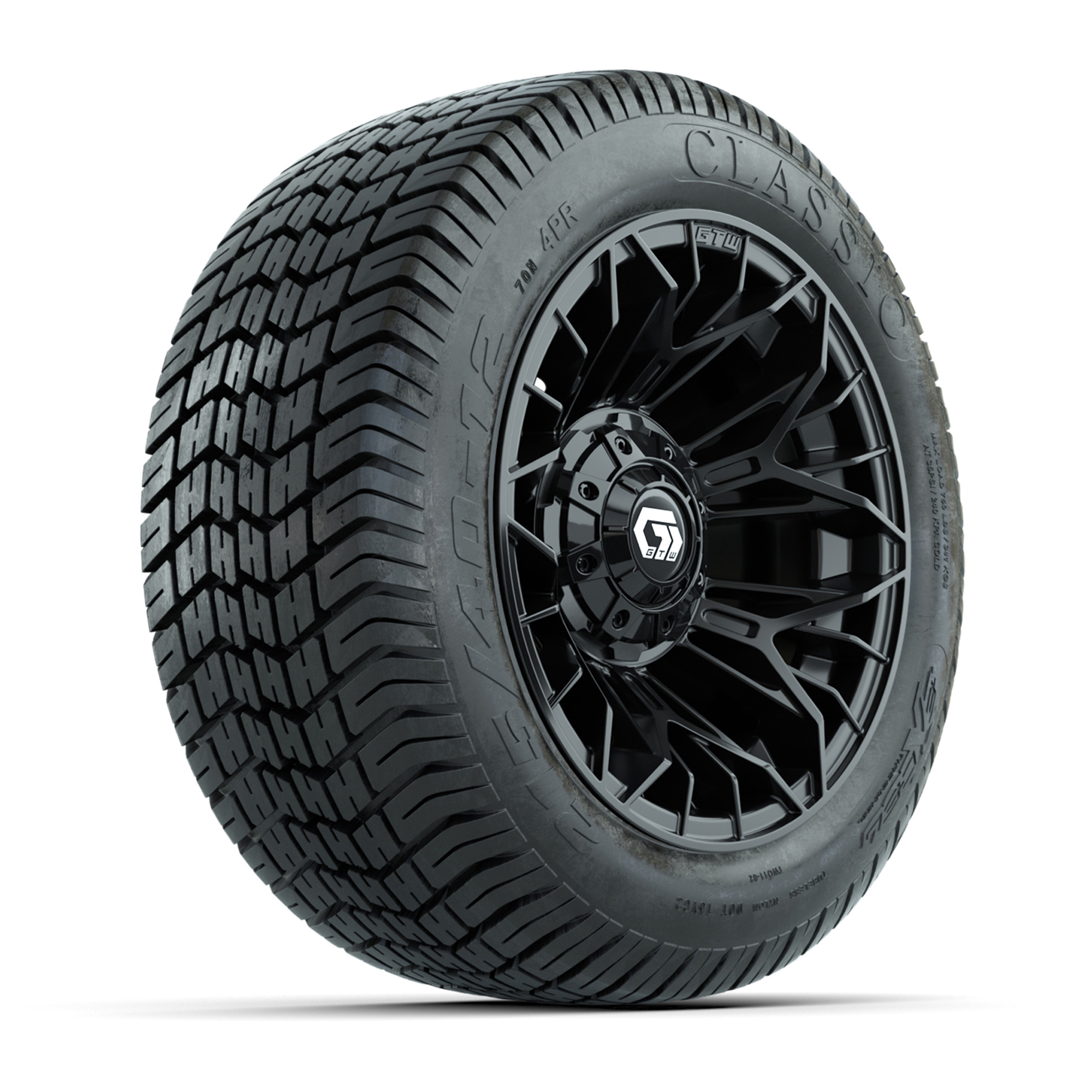 GTW® Stellar Black 12 in Wheels with 215/40-R12 Fusion GTR Steel Belt Radial Street Tires – Full Set